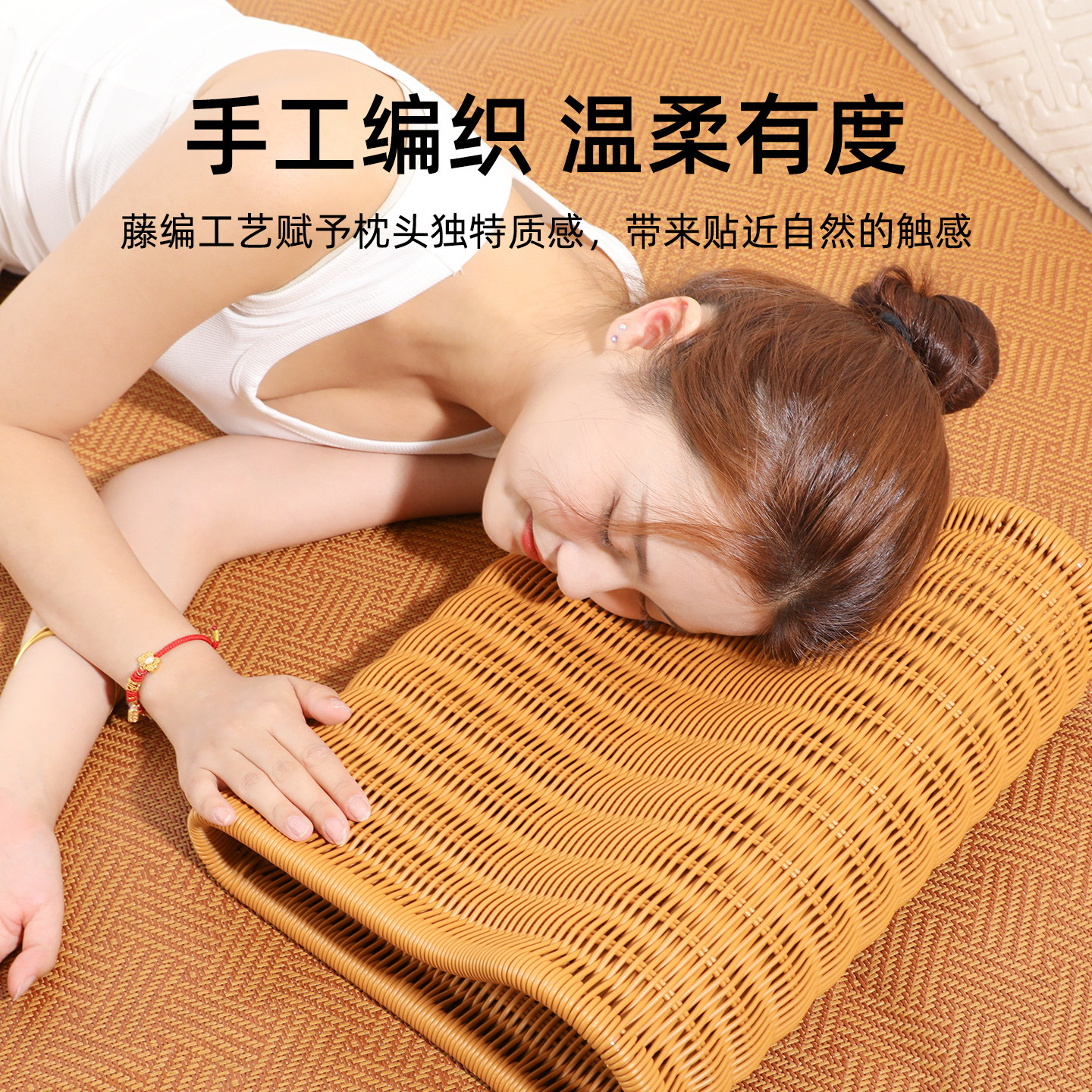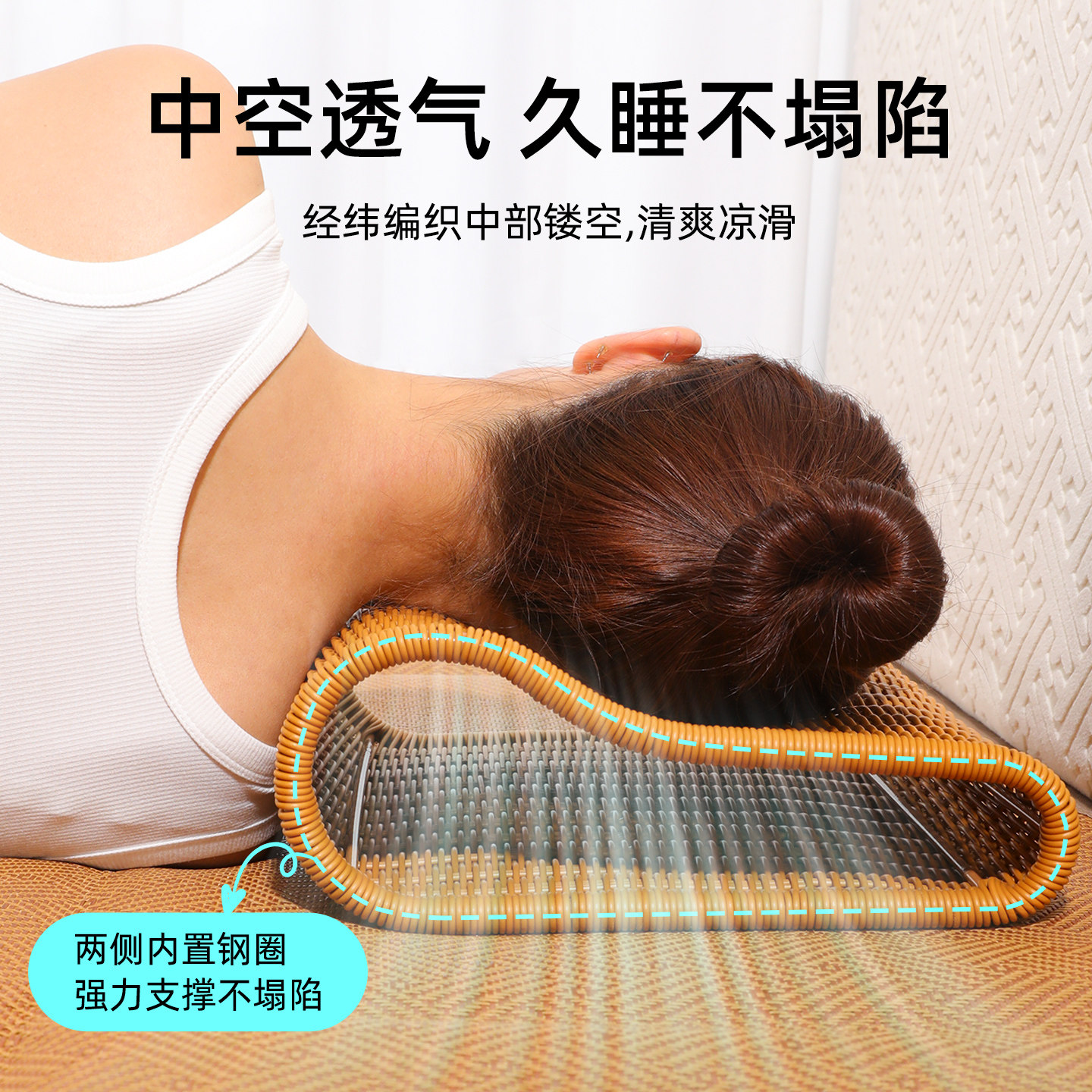 护颈椎中空透气枕头手工编织偏硬空心午休靠枕中式可水洗颈椎病