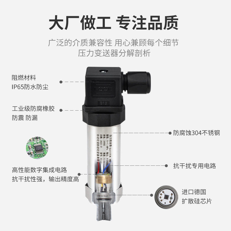 适用于恒压供水真空压力变送器RS485气压液压传感器4-20mA0-10V液