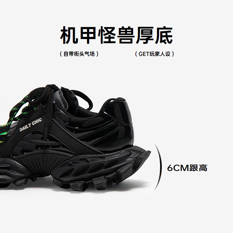 MIO米奥老爹鞋女2025春季新款机甲怪兽厚底增高漆皮时尚休闲单鞋