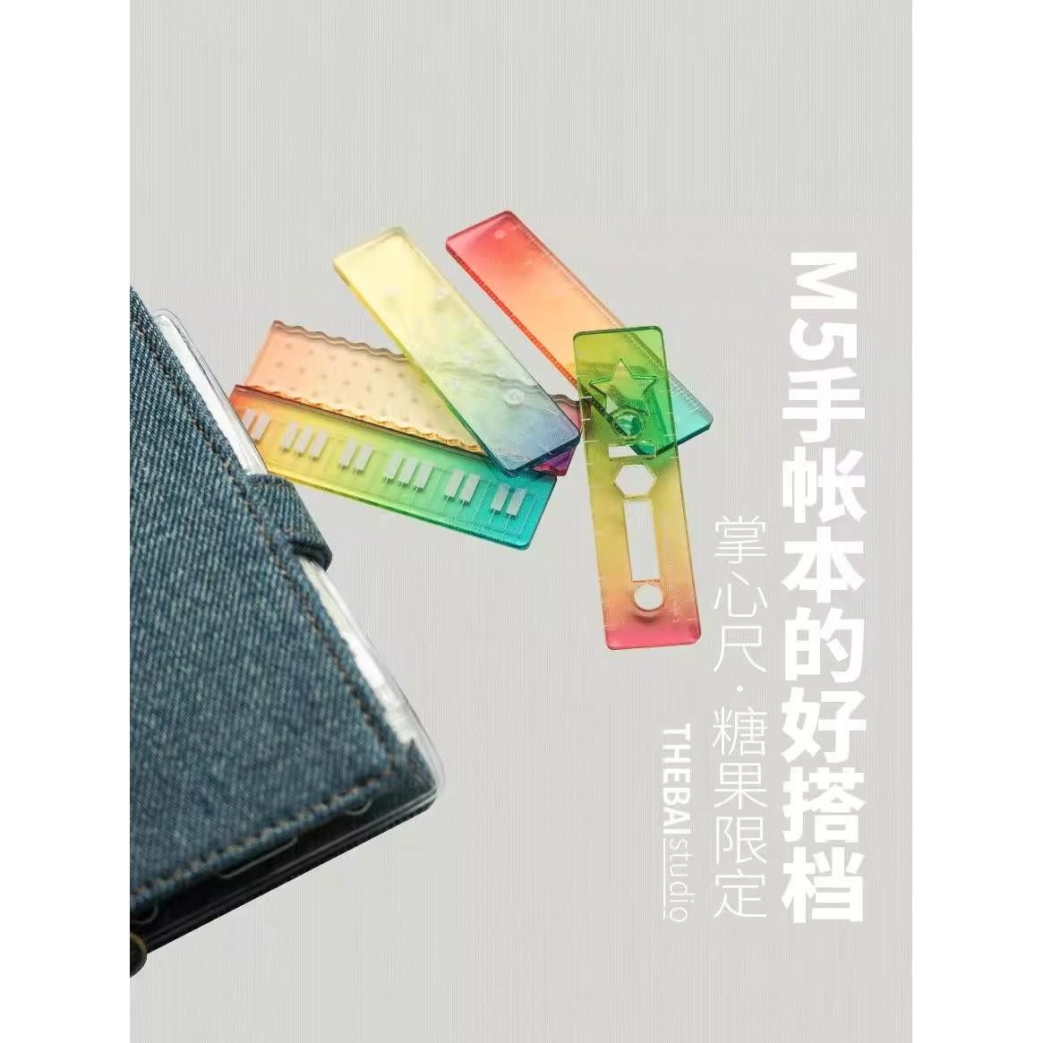 2026现货加厚升级迷你糖果色学生掌心尺彩色刻度尺透明波浪直尺