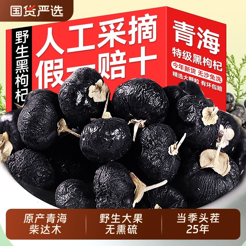 野生黑枸杞子干青海正品宁夏特级免洗官方旗舰店500g正宗大果泡茶