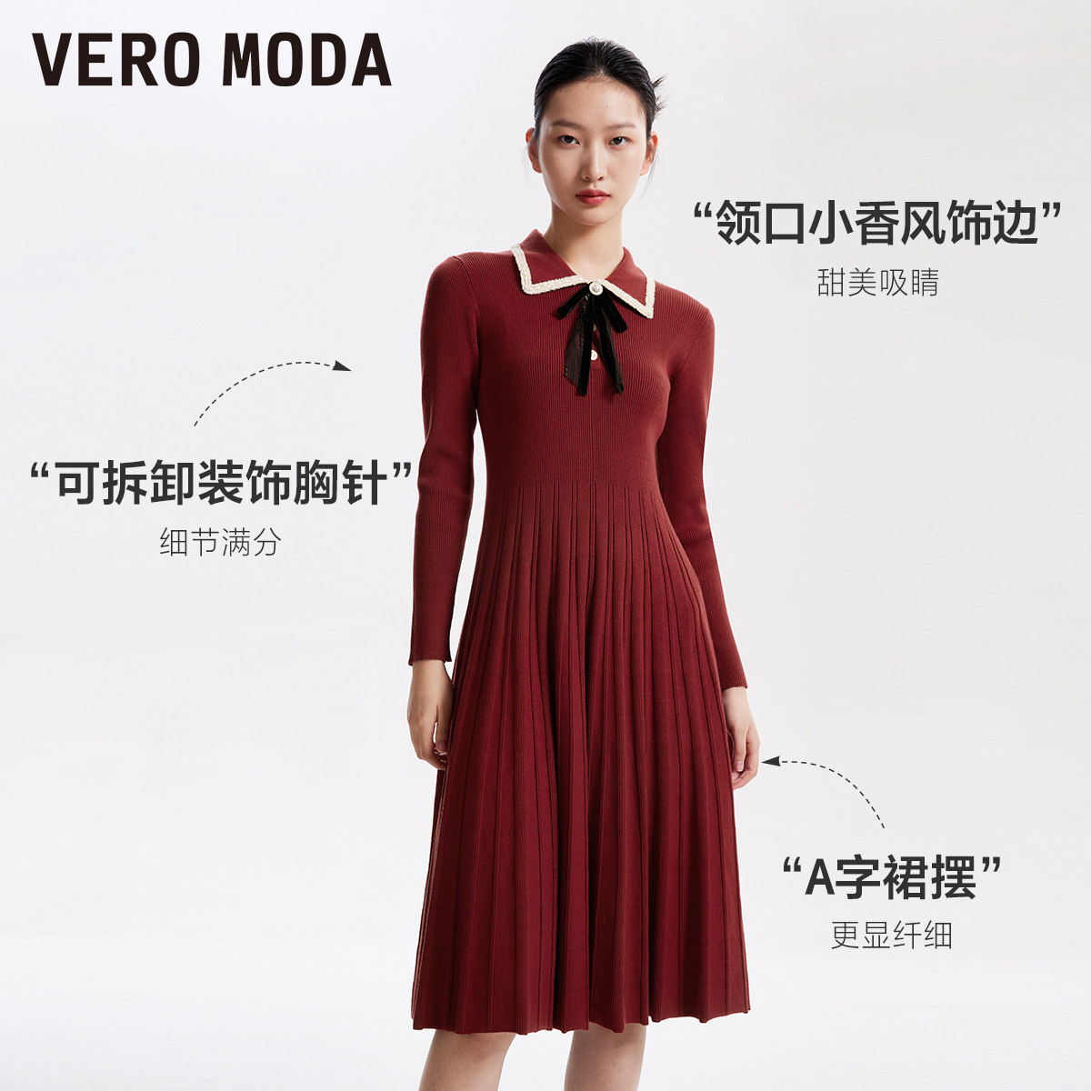 Vero Moda奥莱针织连衣裙子秋冬清仓优雅气质通勤显瘦百褶女百搭