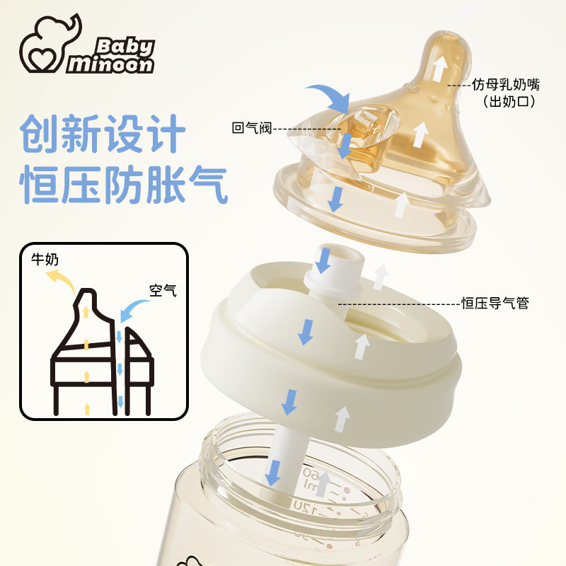 MinoonBaby奶瓶耐摔新生0到6个月ppsu新生儿专用防胀气奶瓶婴儿