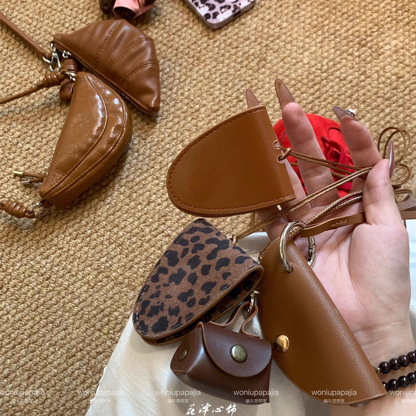 棕色系列~可爱kt猫豹纹皮质磁吸眼镜夹零钱耳机包长款挂脖配饰女