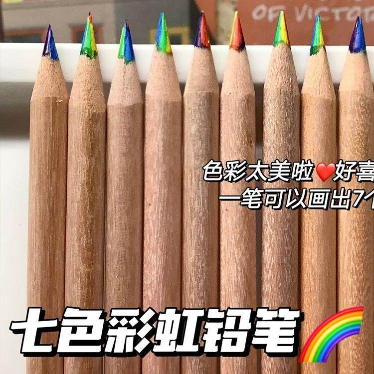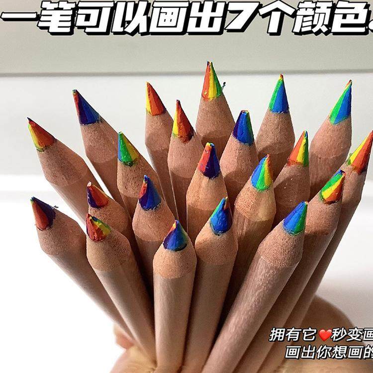彩色铅笔绘画一笔多色彩虹铅笔彩虹笔渐变色彩混色DIY彩铅笔手绘儿童小学生女生幼儿园美术专用填色七色画笔
