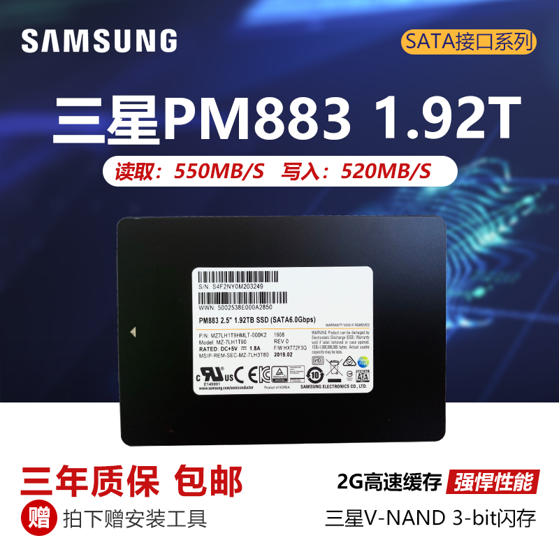 三星SM863A/PM863 480G 960G 1.92T 3.84T MLC SATA固态硬盘PM883