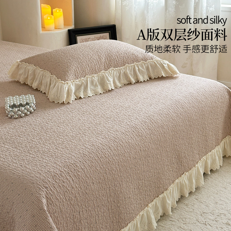 夏季双层纱床盖单件2025新款四季通用榻榻米防滑夹棉床单人三件套