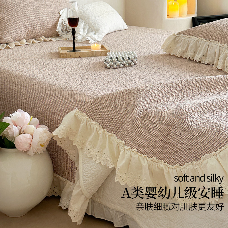 如奕A类母婴级双层纱床盖单件床裙款带裙边夹棉不跑床床单三件套