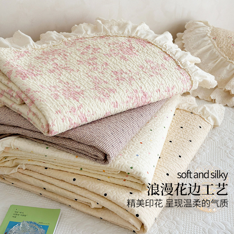 外贸绣花床盖三件套 空调被夏凉被薄款单件 绗缝被床单ins床裙式