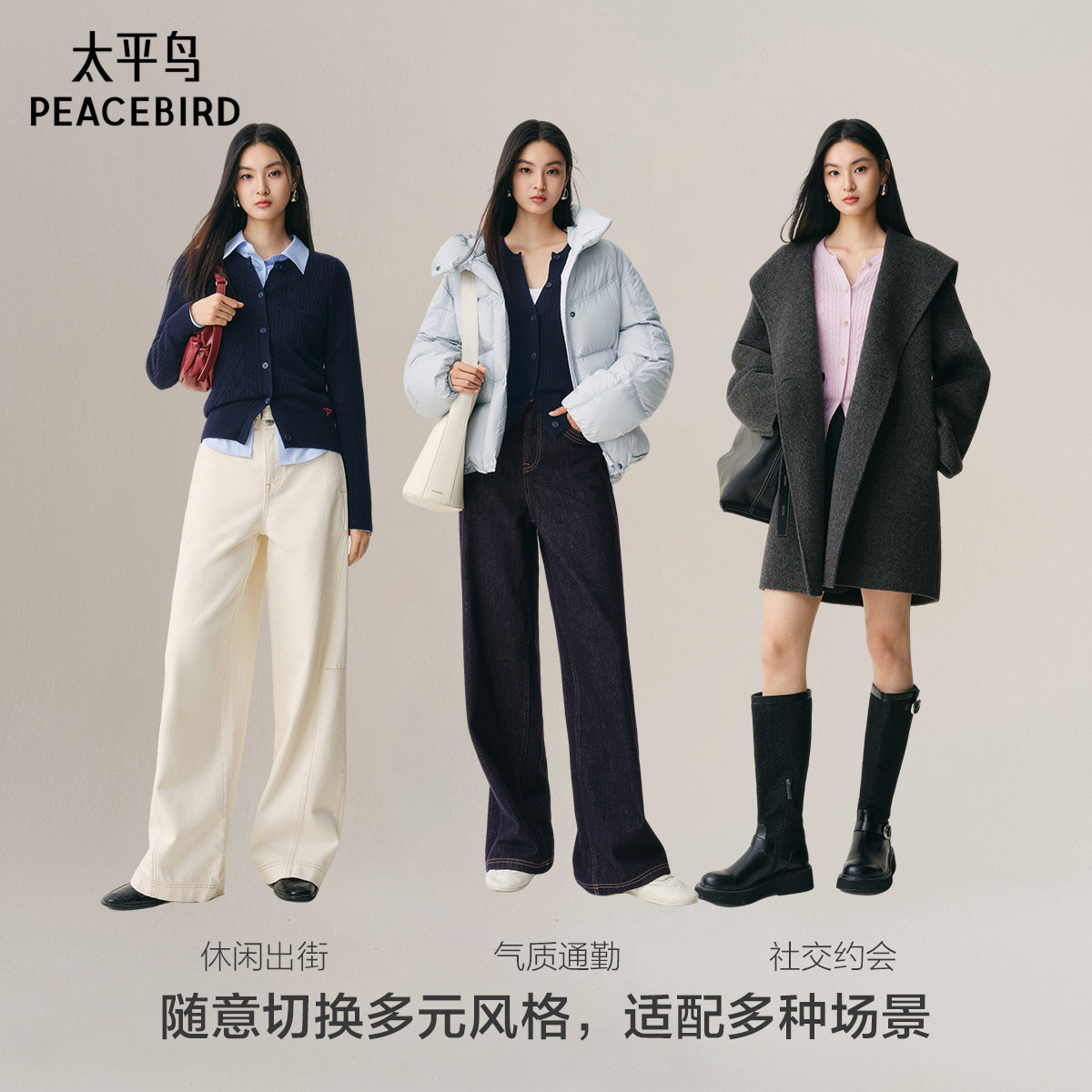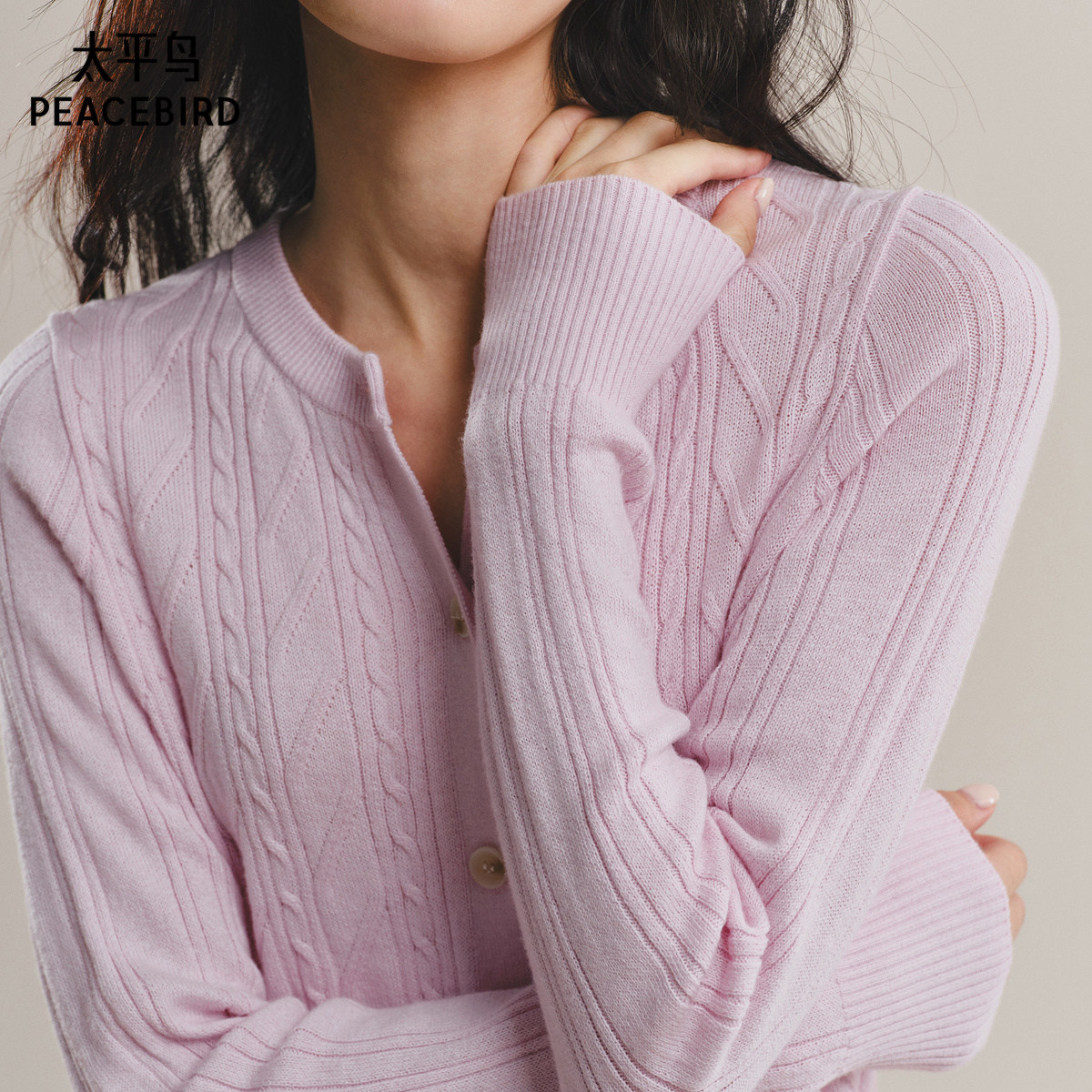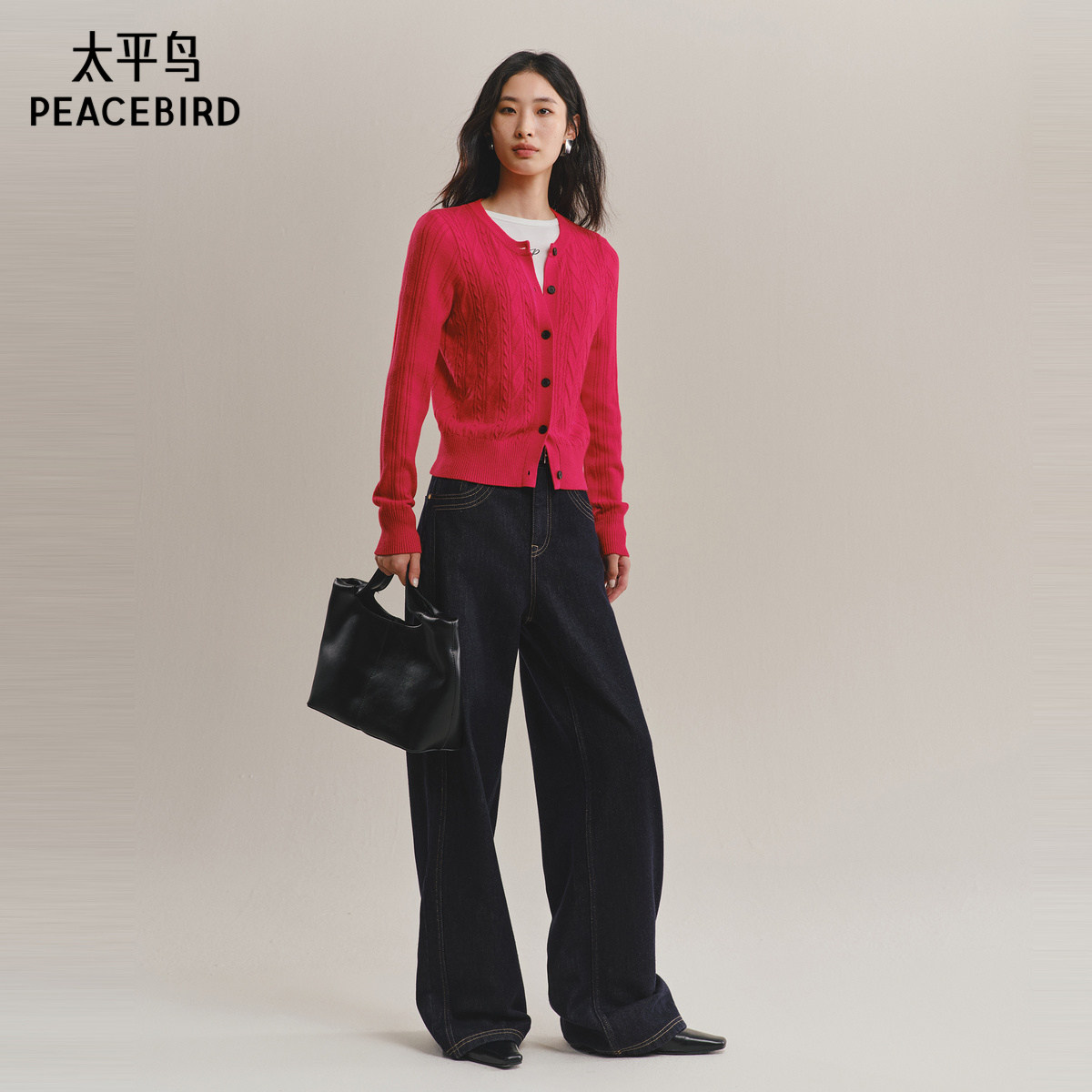 太平鸟 高智miu系绞花针织开衫25冬羊绒混纺红色新年外套上衣