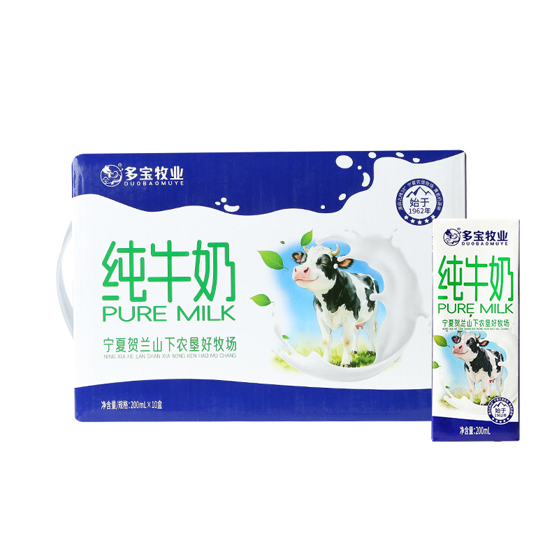 多宝牧业宁夏牧场纯牛奶200ml*10盒/箱新鲜学生早餐奶农垦全脂
