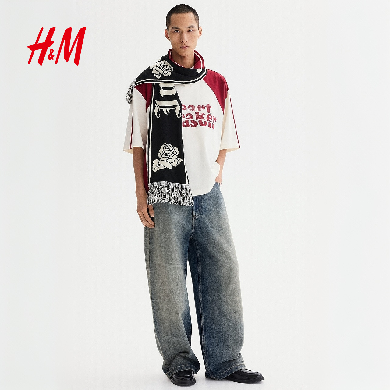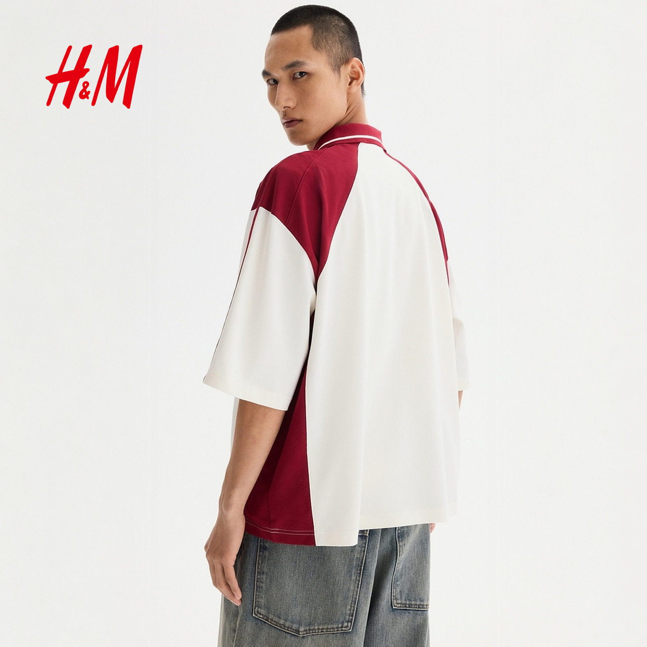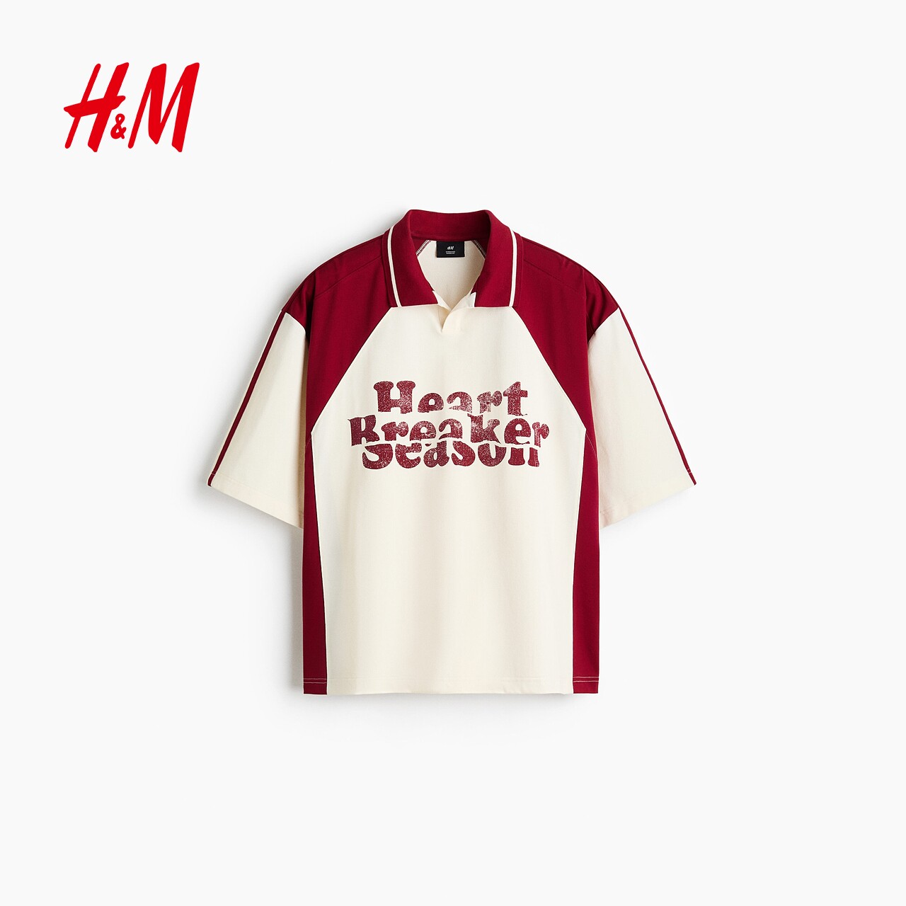 HM男装女装Polo衫2026春季新款红色情侣装大廓形短袖上衣1331721