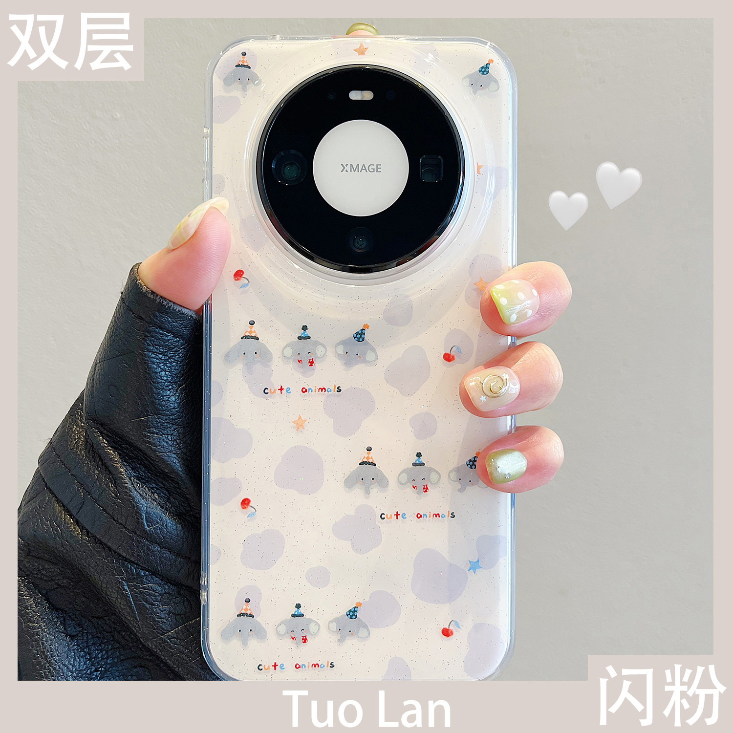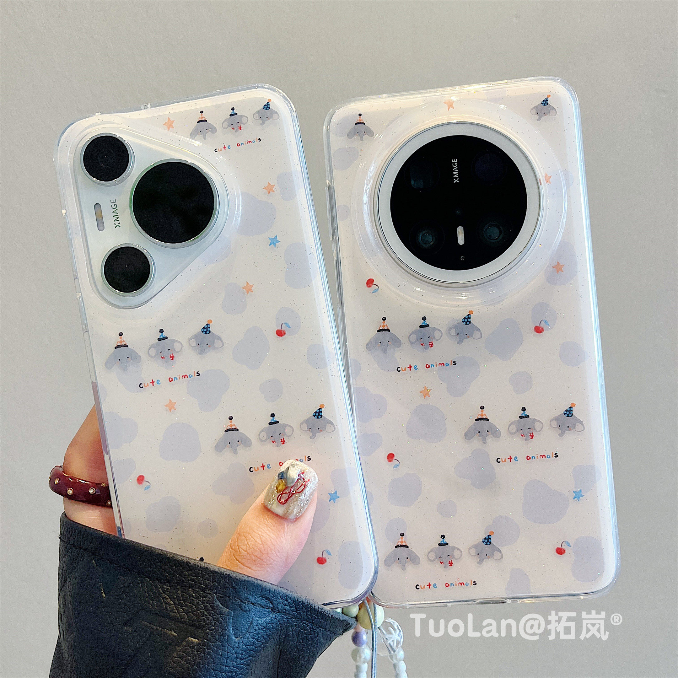 拓岚 适用华为mate70pro+手机壳新款闪粉韩系ins牛奶纹卡通小飞象mate60pro/80挂绳pura70/80pro+硅胶防摔女