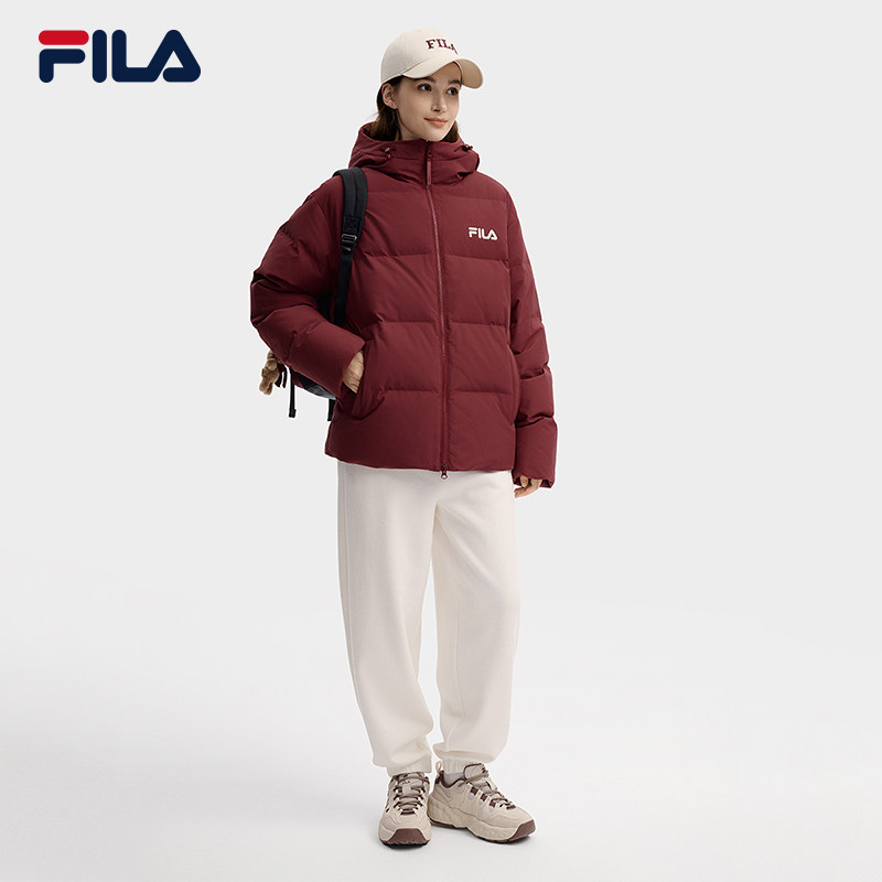 斐护科技|FILA斐乐情侣羽绒服女2025冬新款运动保暖红色厚外套男