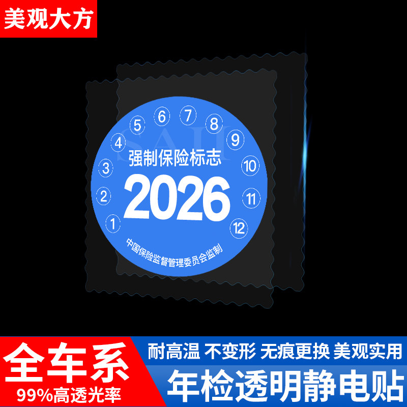 汽车年审静电贴年检贴标志免贴袋玻璃贴车险保养提示贴免撕车标贴