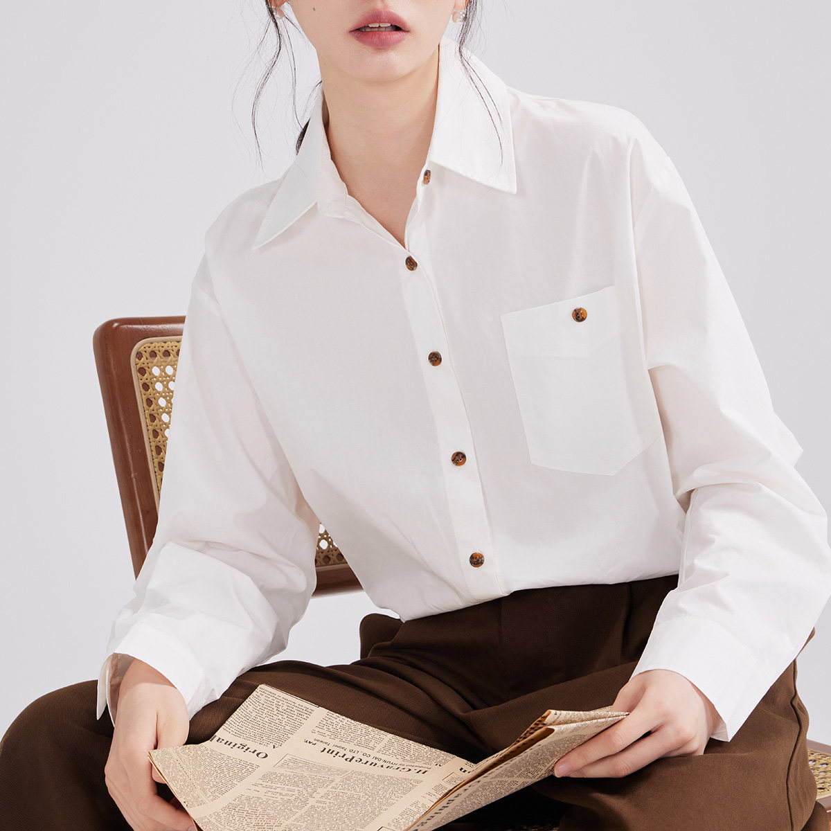 M联名款? 岚室(Clamisgold)抗皱正肩可拆卸领假两件长袖衬衫女