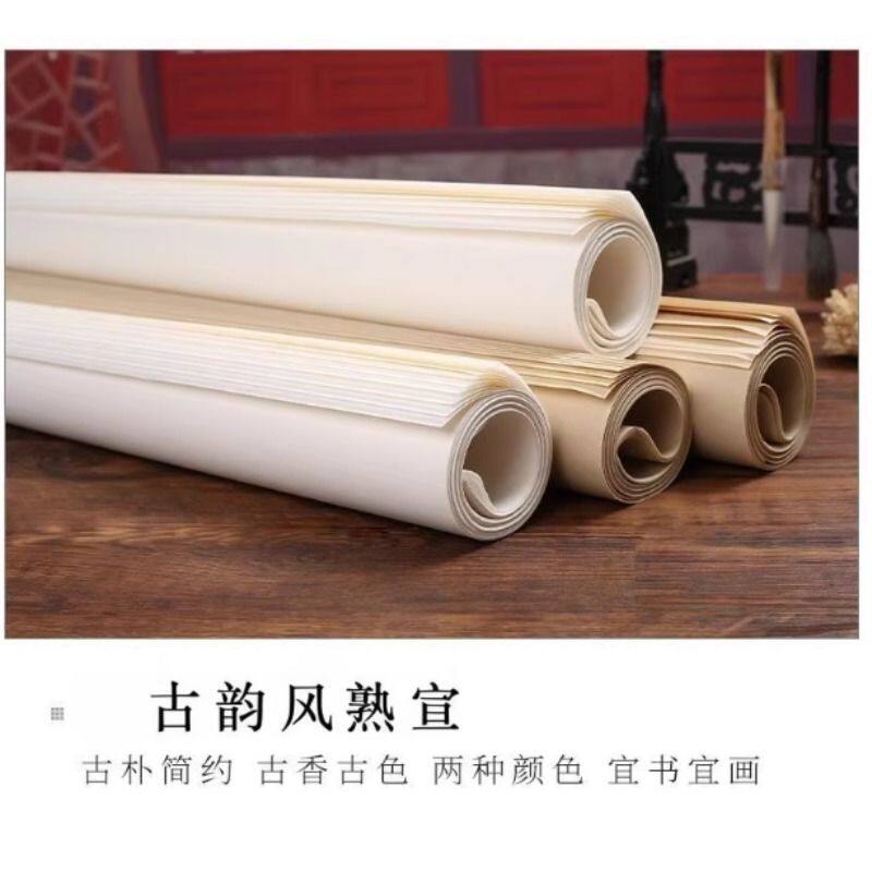 宣纸四尺整张六尺对开书法国画毛笔字珠光云母熟宣工笔画专用小楷作品纸白色仿古纸生宣半生半熟宣大尺寸宣纸
