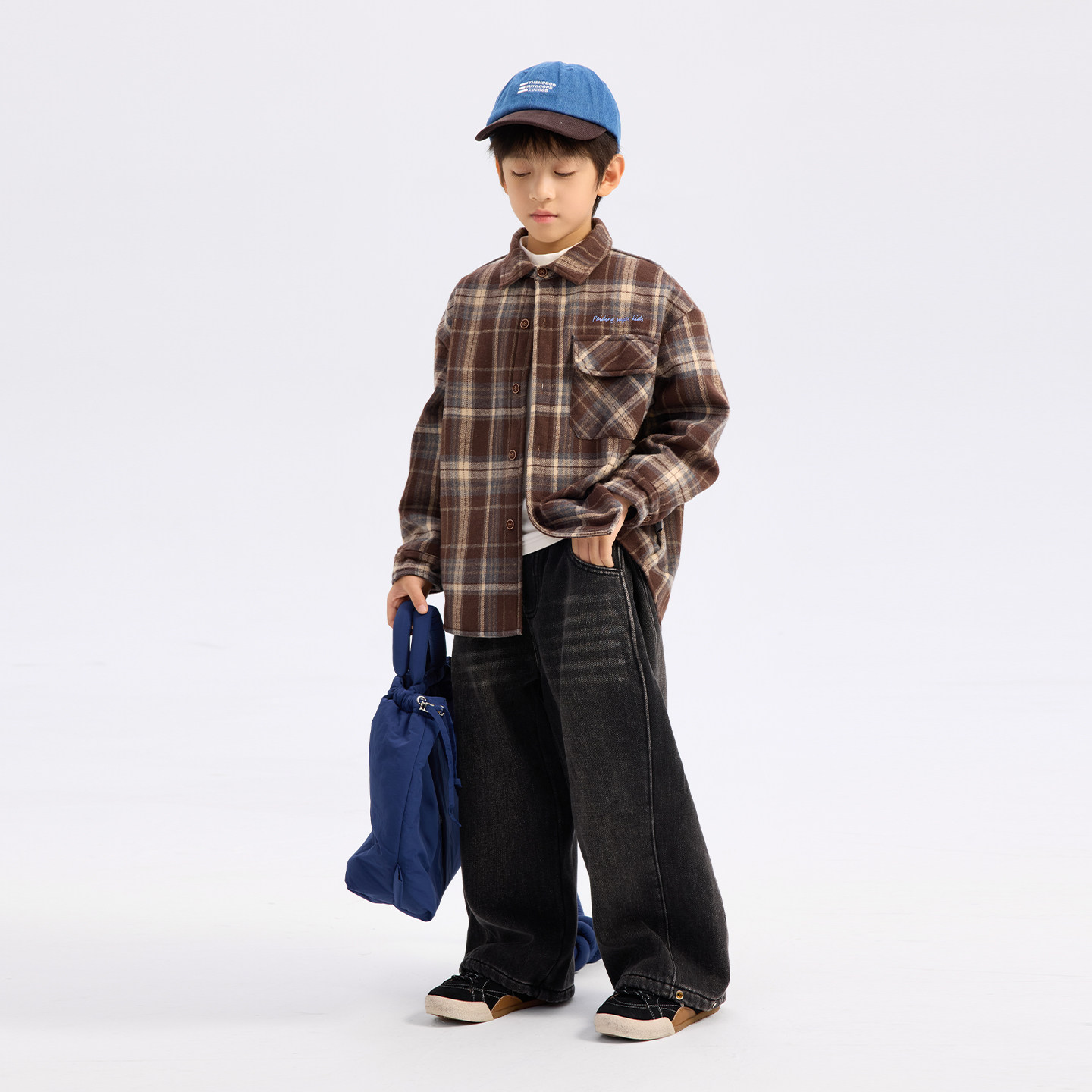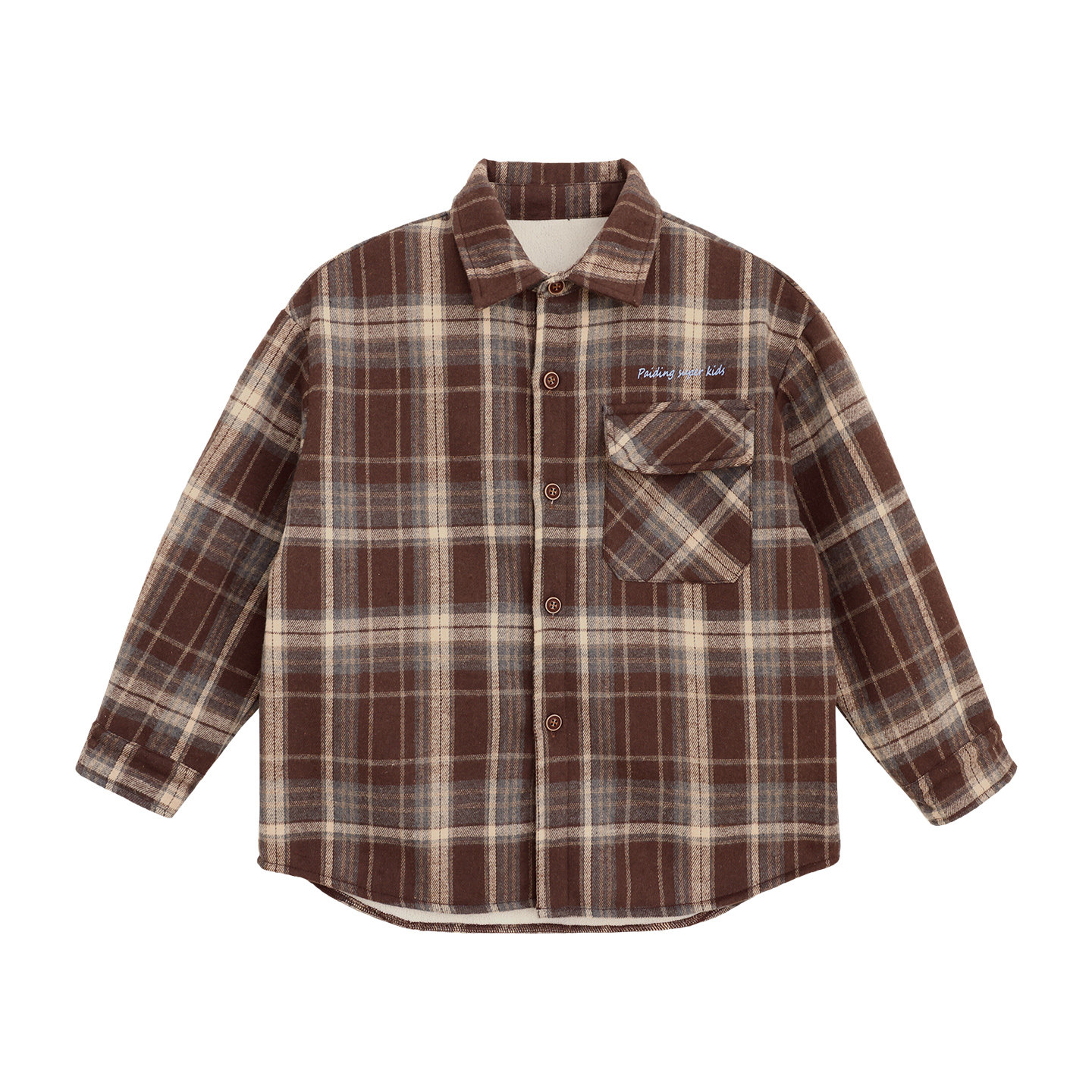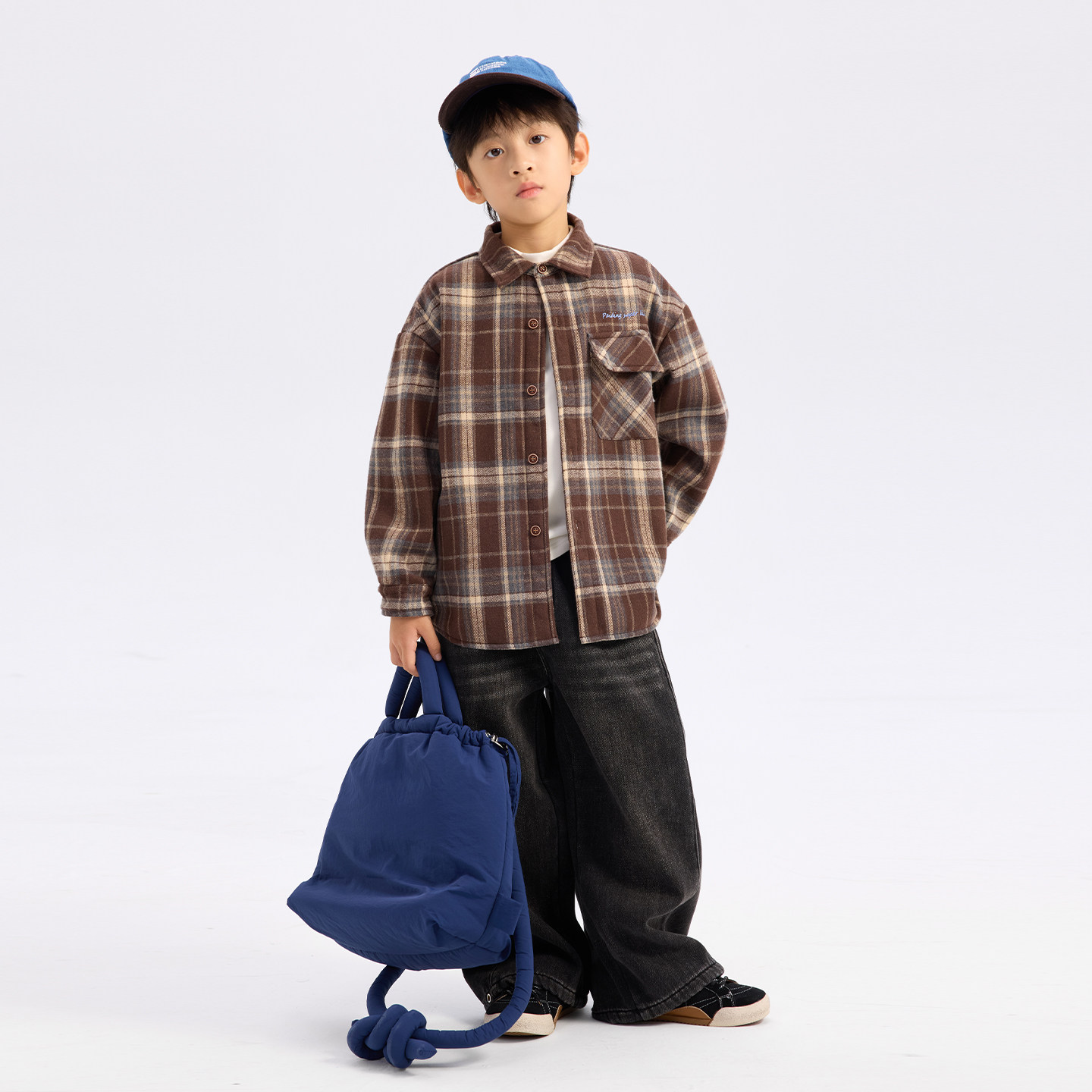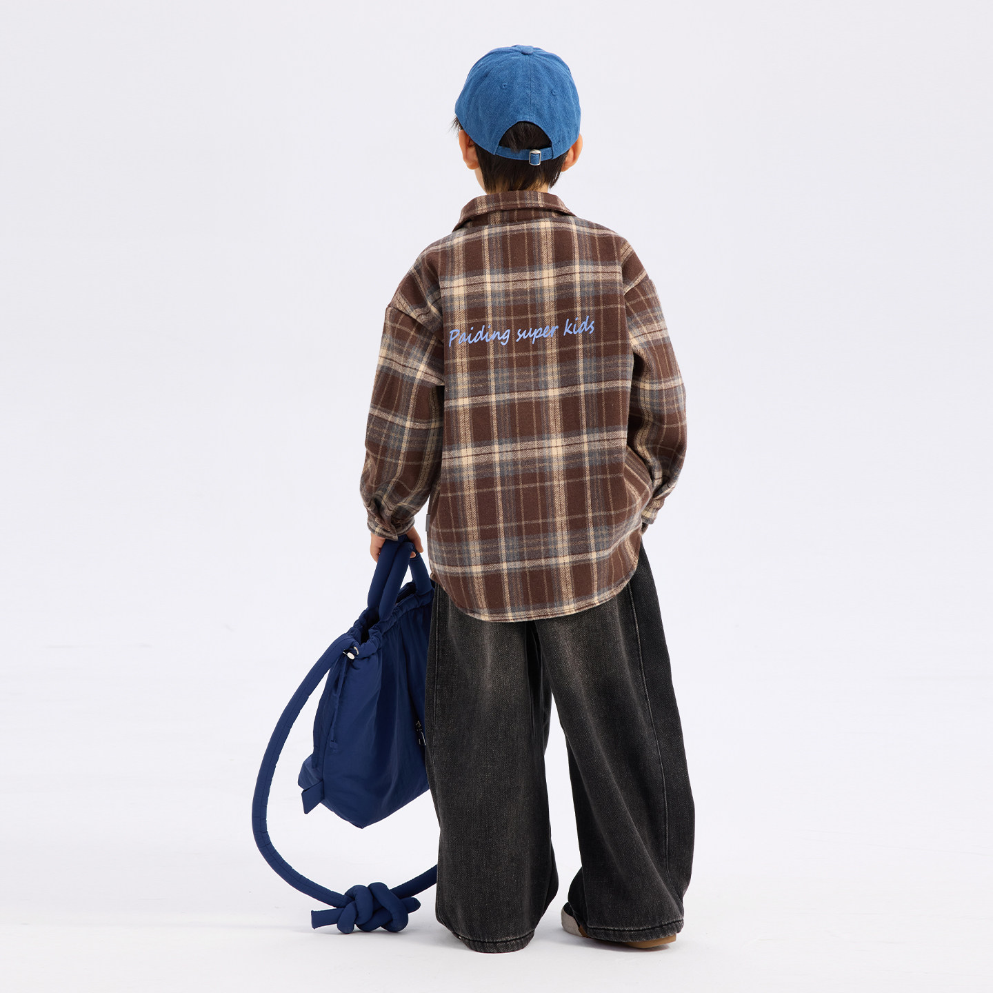 派町童装男童衬衫2025冬季新款复古格纹儿童翻领衬衫长袖外套加绒
