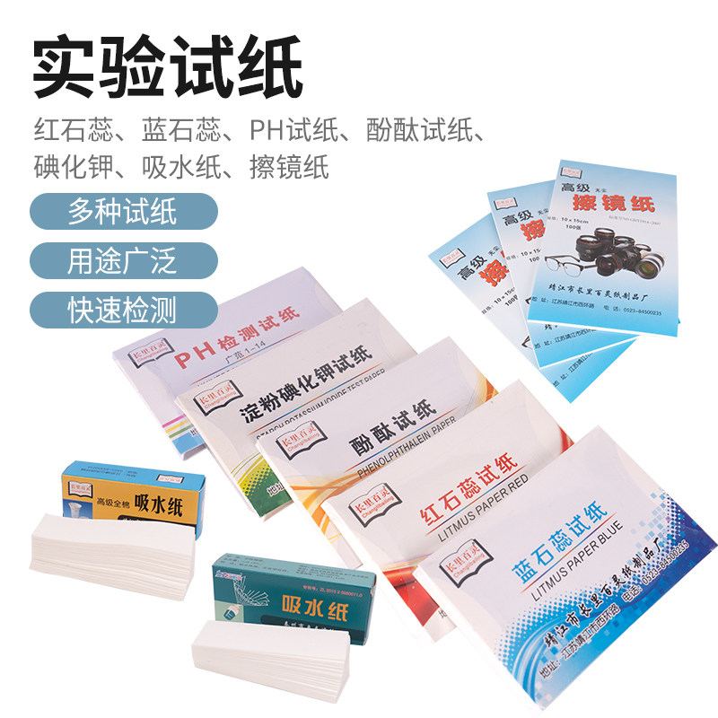 吸水纸100张/盒 清洁除尘化学生物实验室教学耗材 盒装擦镜纸红色 蓝色石蕊试纸ph试纸定性滤纸酚酞碘化钾