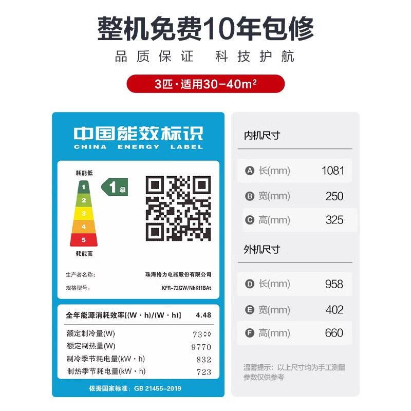 格力空调官方新一级能效3匹变频冷暖大挂机客厅卧室挂壁机清炫风