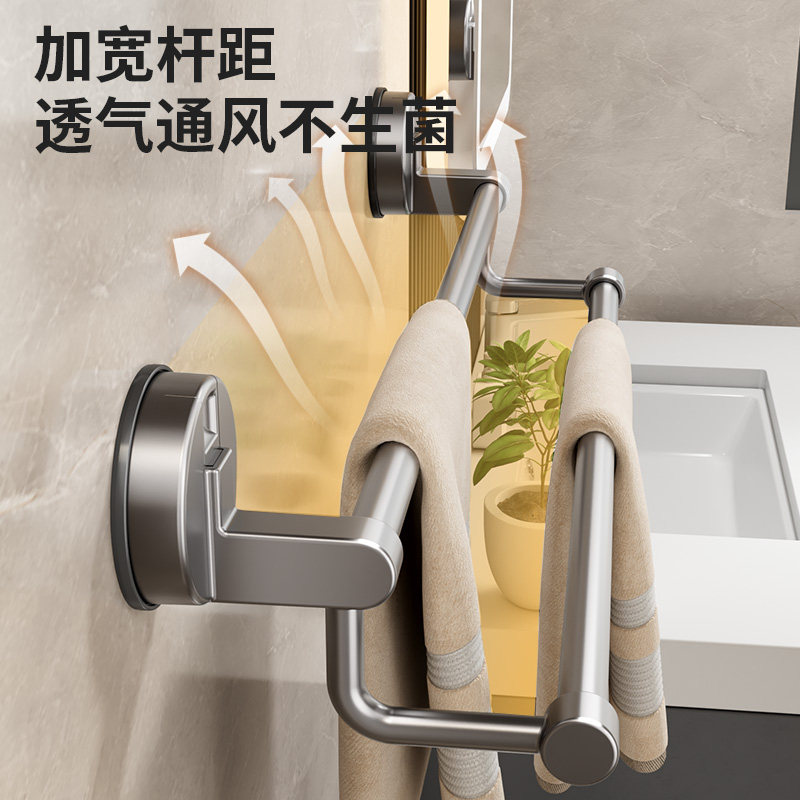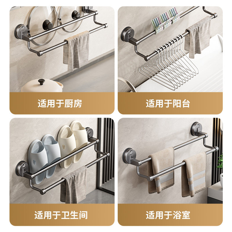 吸盘毛巾架子毛巾杆卫生间免打孔浴室收纳挂架壁挂双单杆厨房玻璃