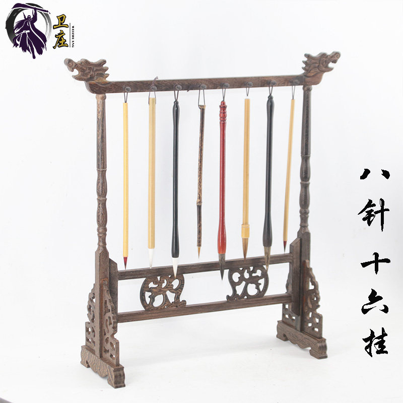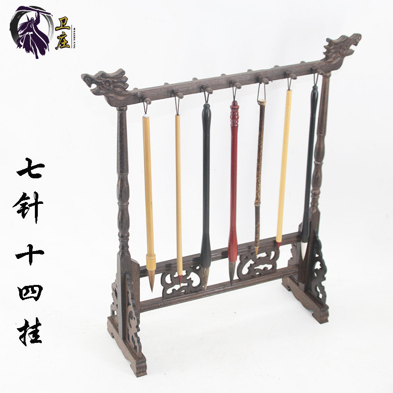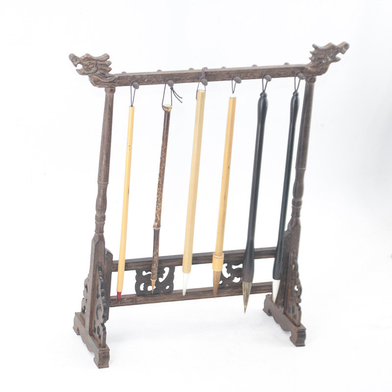 文房四宝笔挂红木多功能龙头笔搁大小号鸡翅木毛笔架包邮