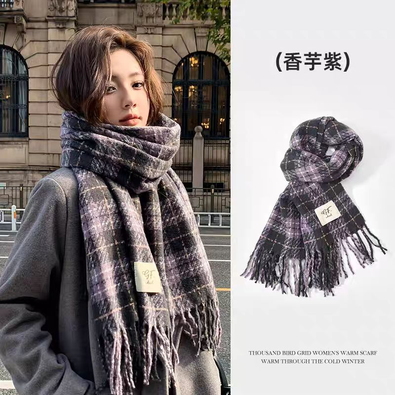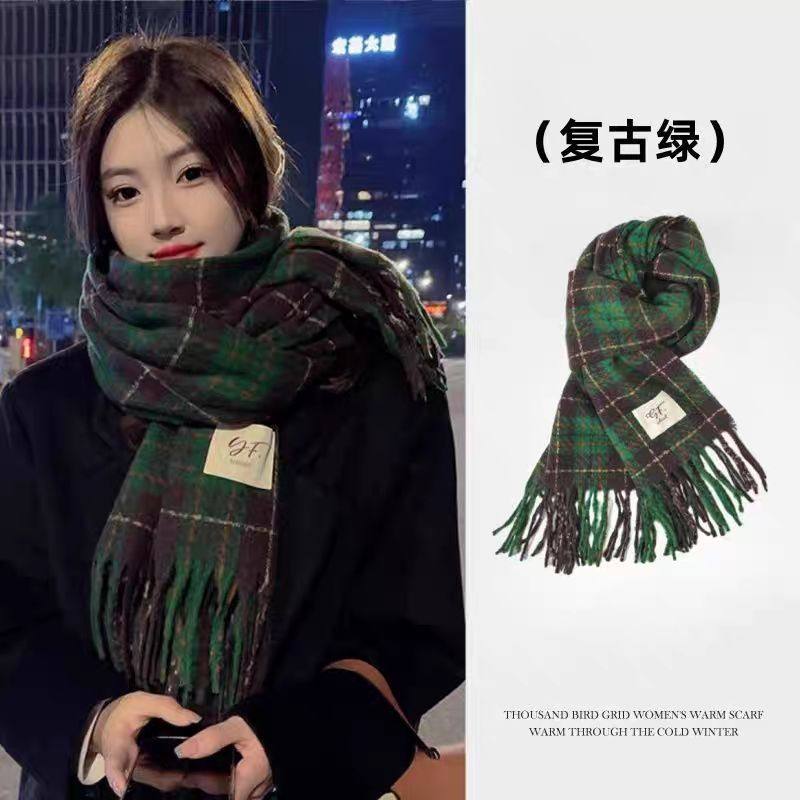 三福格子围巾韩系高级感保暖围脖披肩两用旅游外搭女冬季2025新款