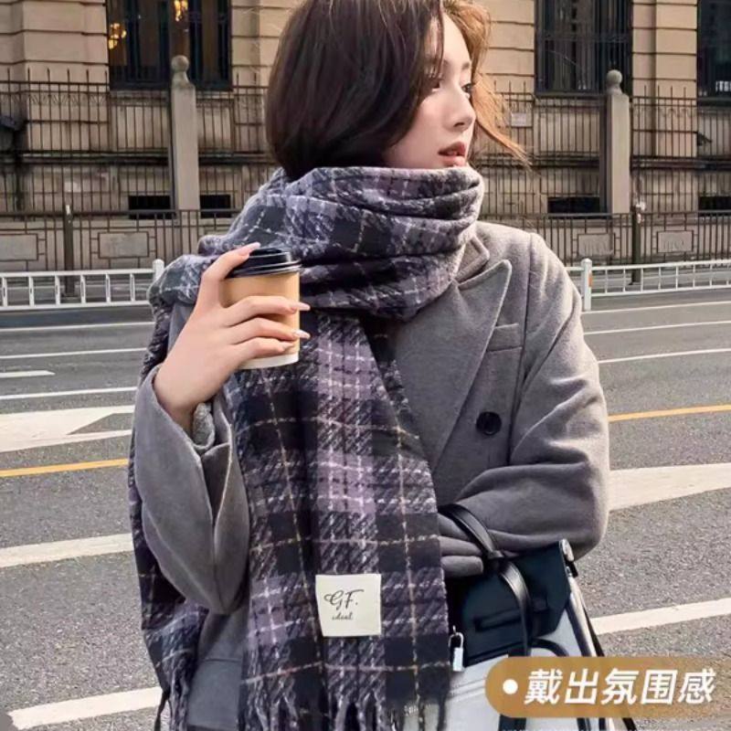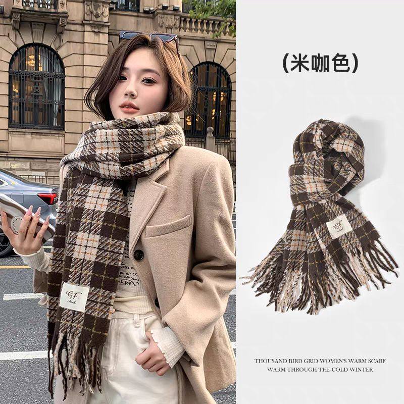围巾女秋冬季2025新款高级氛围感格子韩系学生百搭加厚保暖围脖男