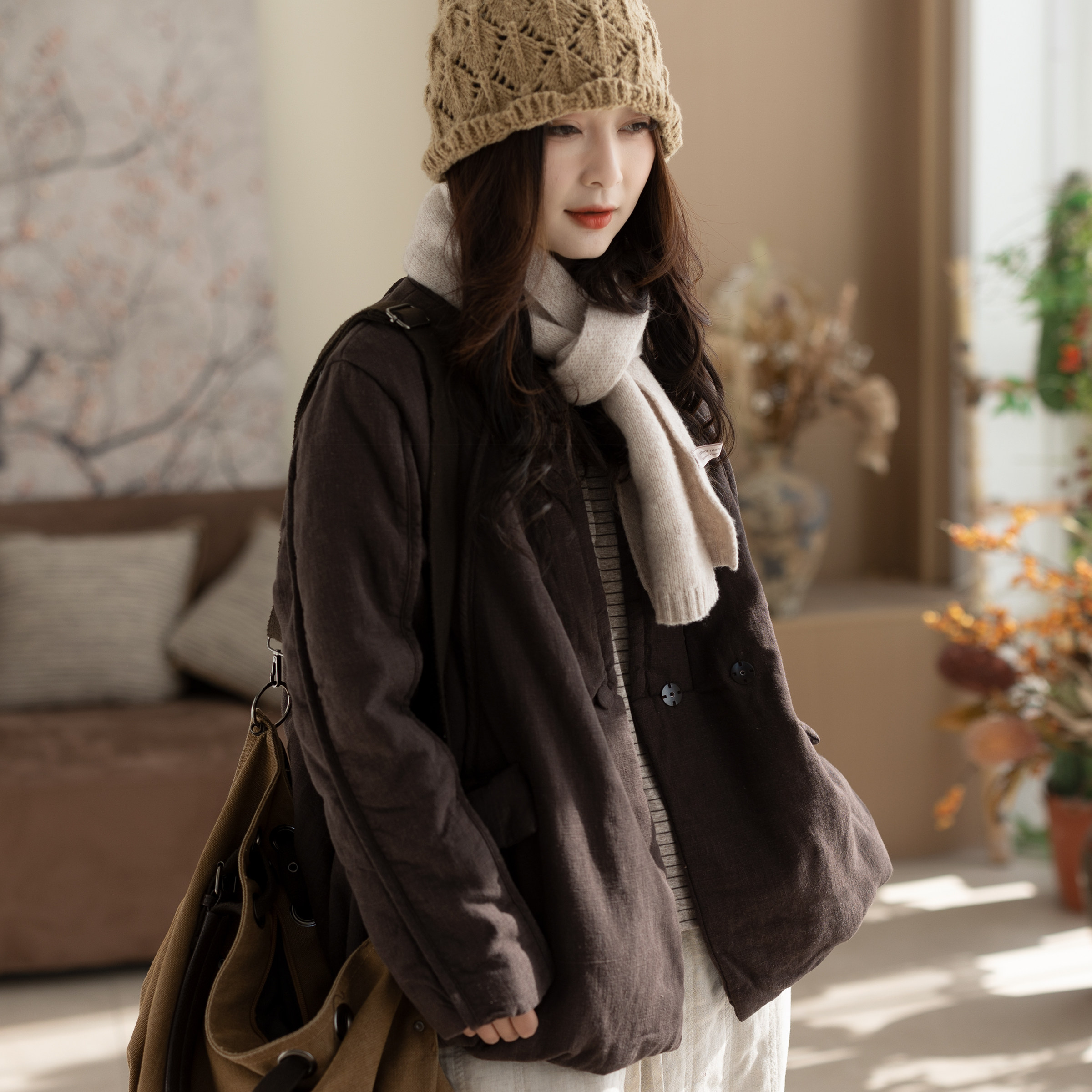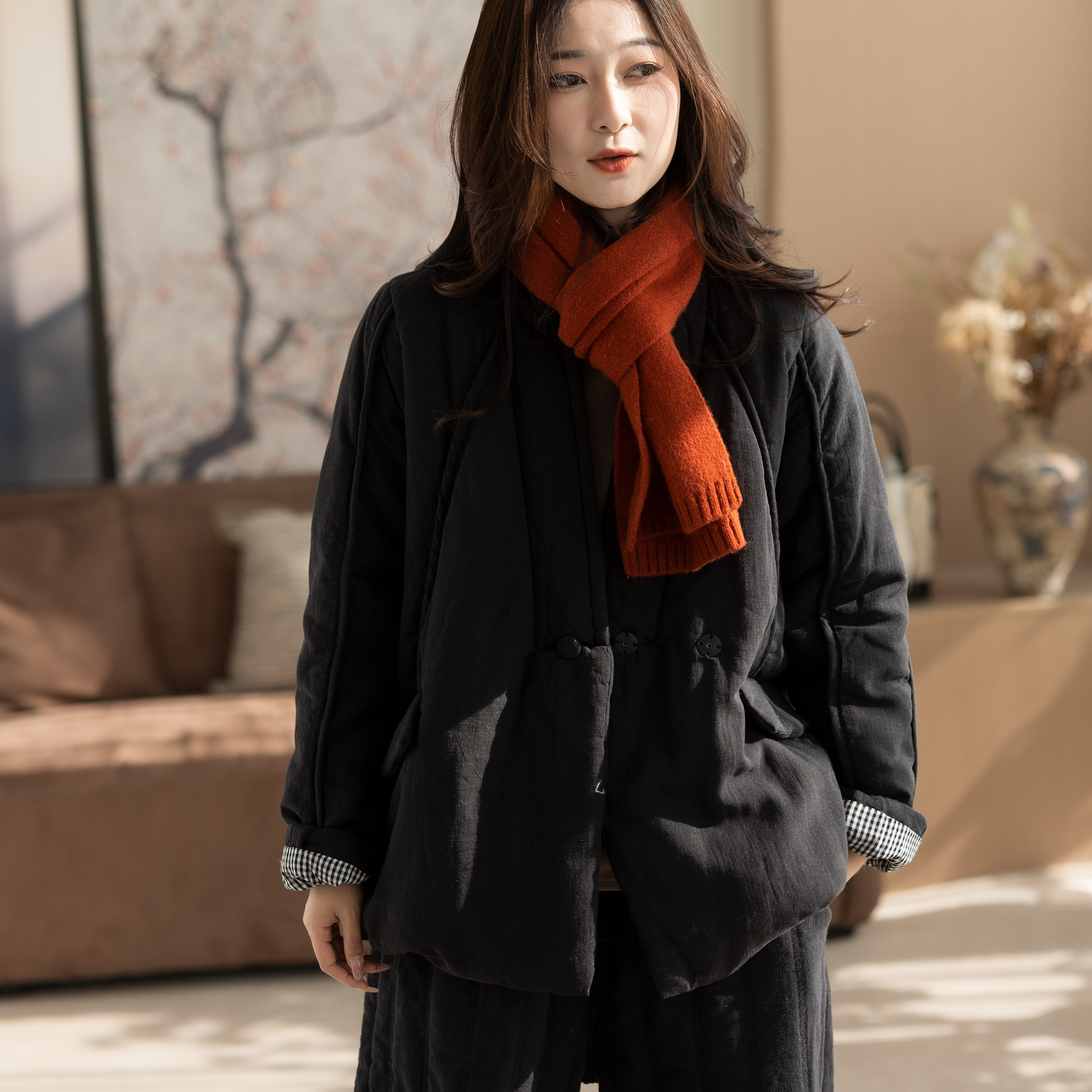 咖咪羽秋冬新款棉服女文艺时尚好看女士棉麻宽松气质显瘦女款上衣