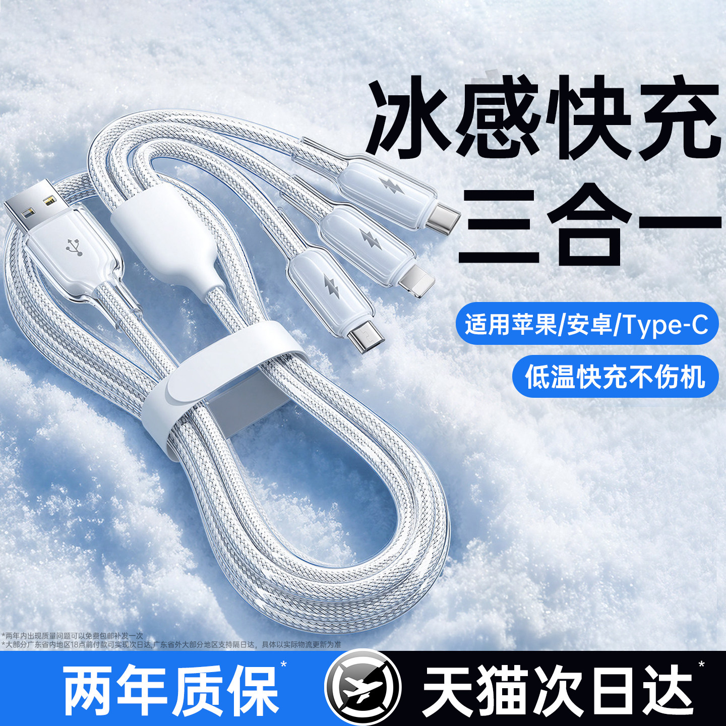 【冰感快充】铂信数据线三合一充电线器一拖三超级快充6A适用苹果17华为安卓Typec多功能USB三口手机车载传输