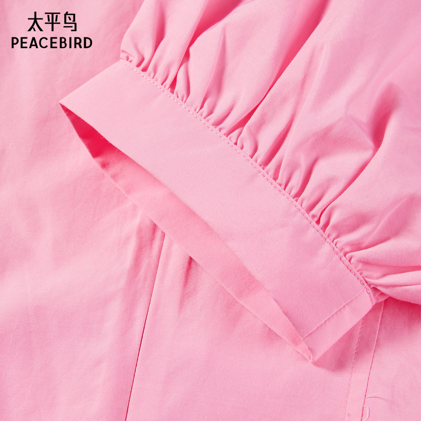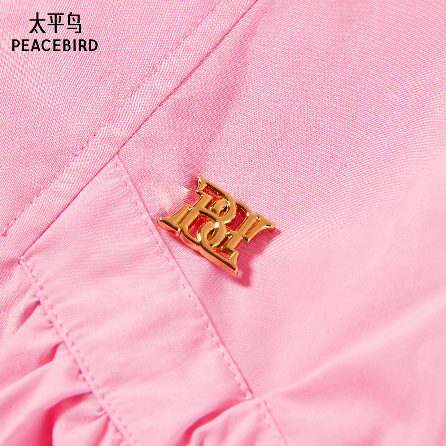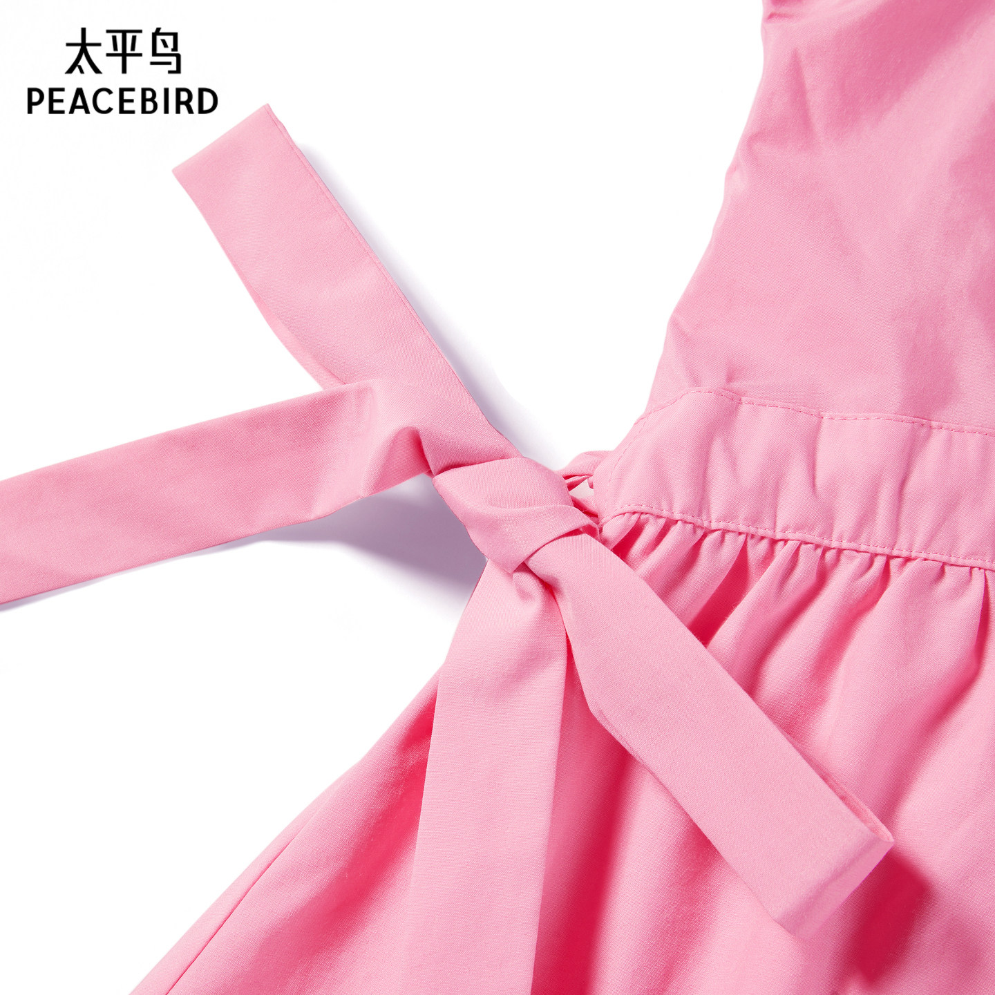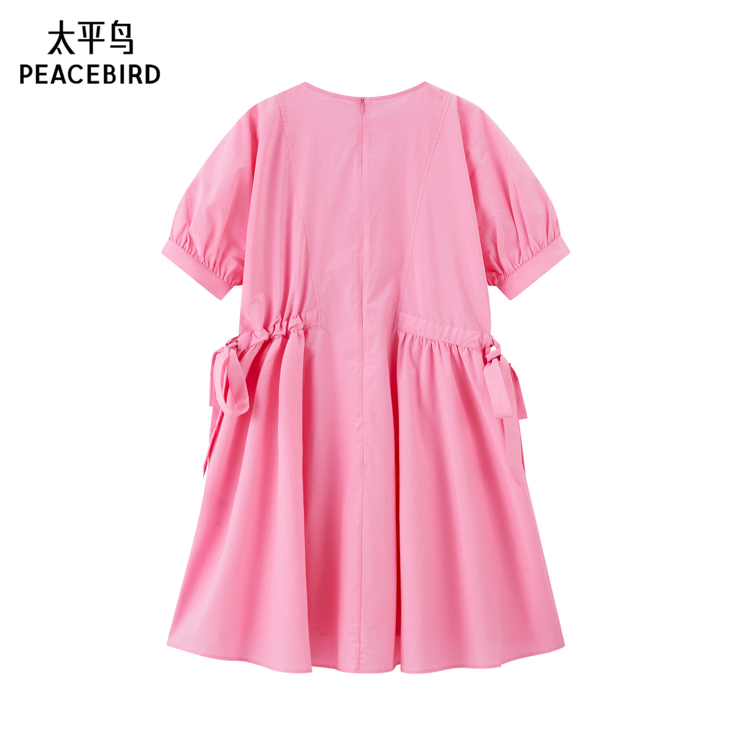 太平鸟粉色夏装新款短袖V领娃娃裙宽松连衣裙女品质时尚A1FAE2463