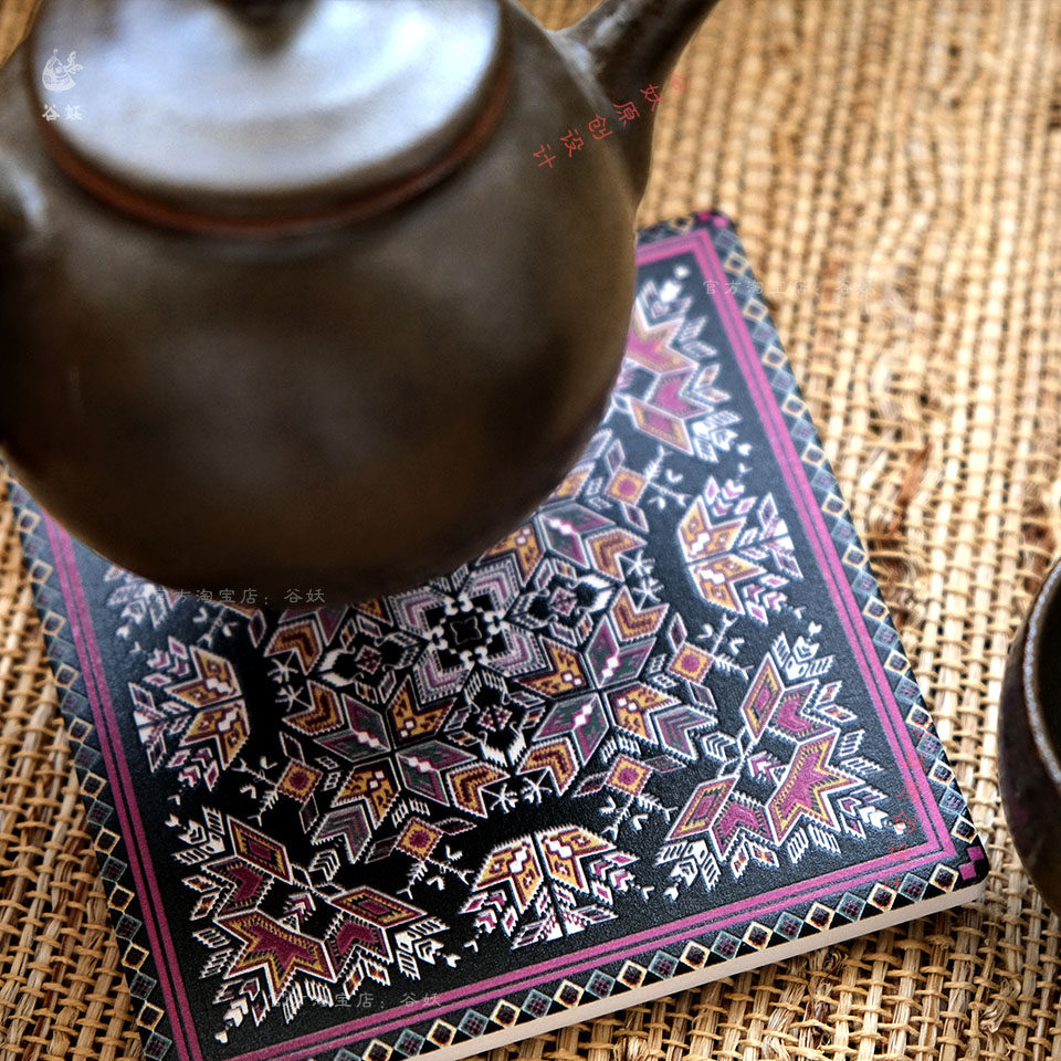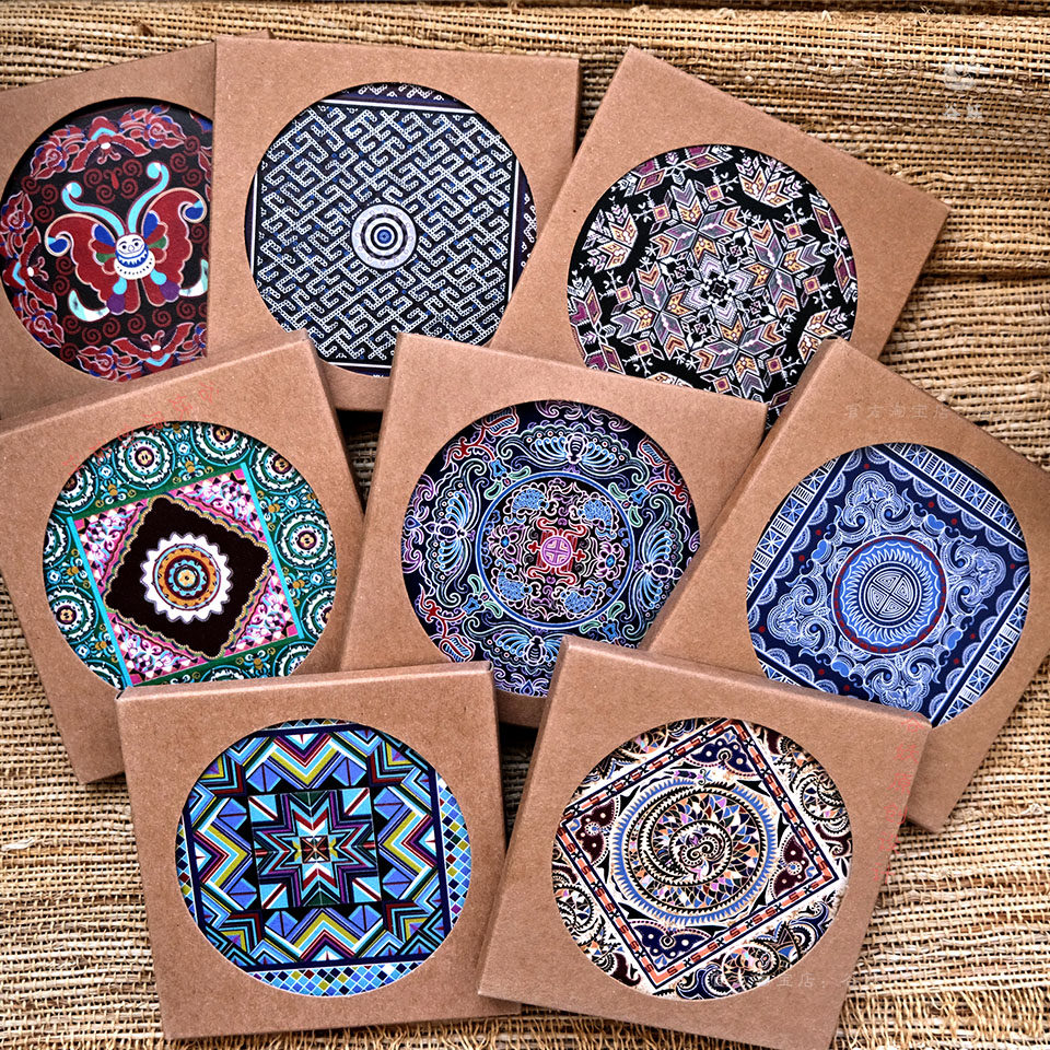 谷妖 绣片纹样陶瓷杯垫隔热垫 原创非遗设计贵州礼物精美微浮雕