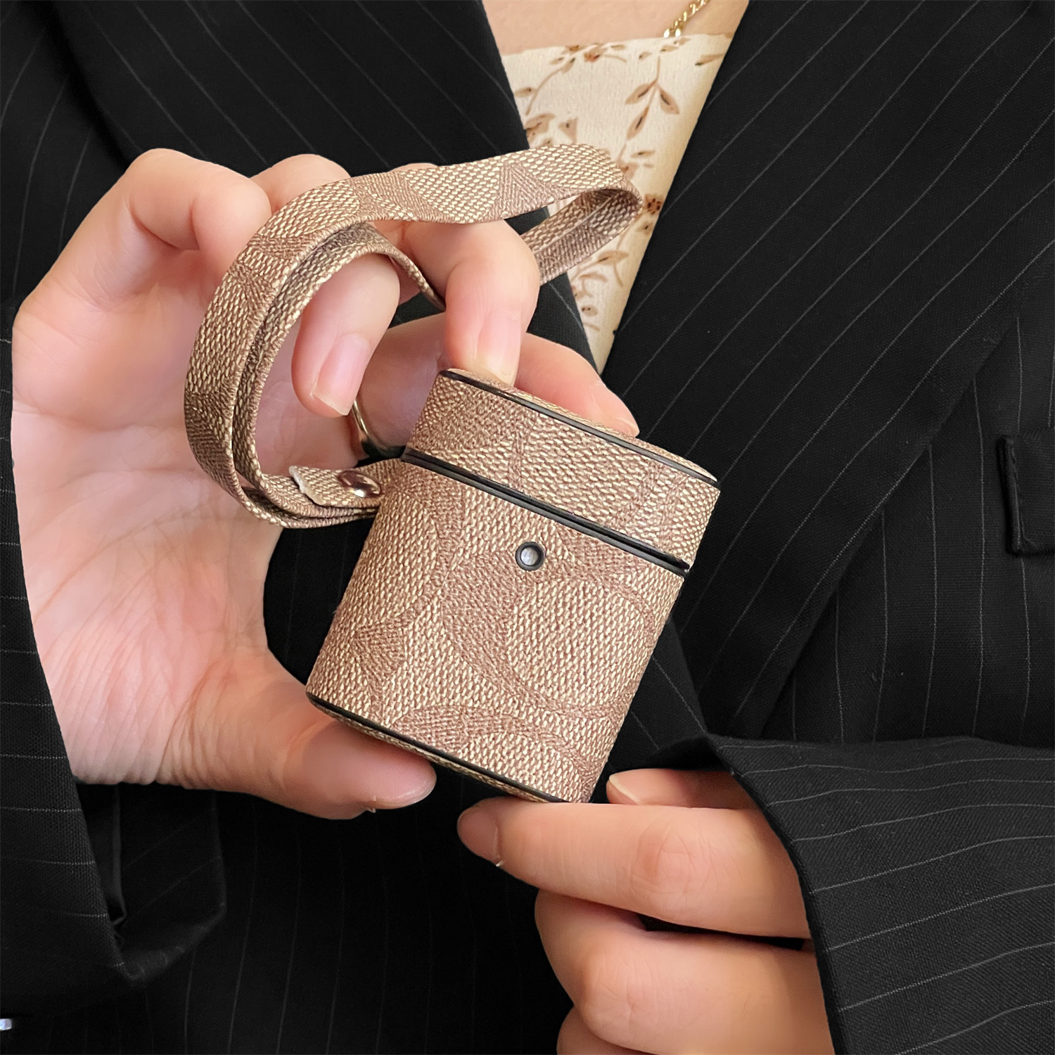 新款潮牌高级感老花适用苹果无线蓝牙耳机AirPods pro二代AirPods 1/2/3/4代高档大牌皮质全包防摔挂绳男女
