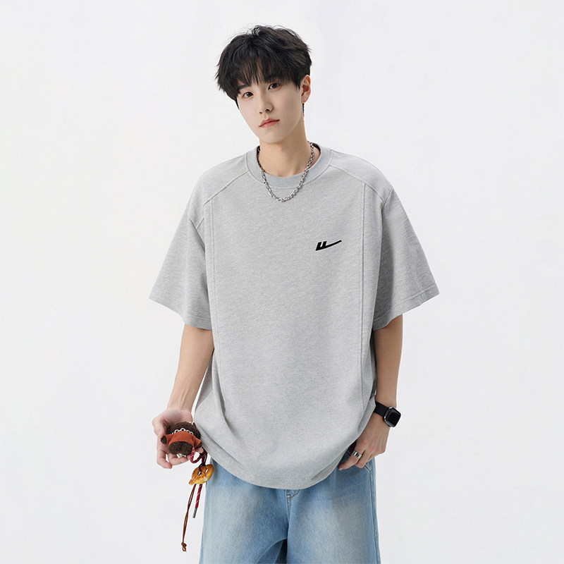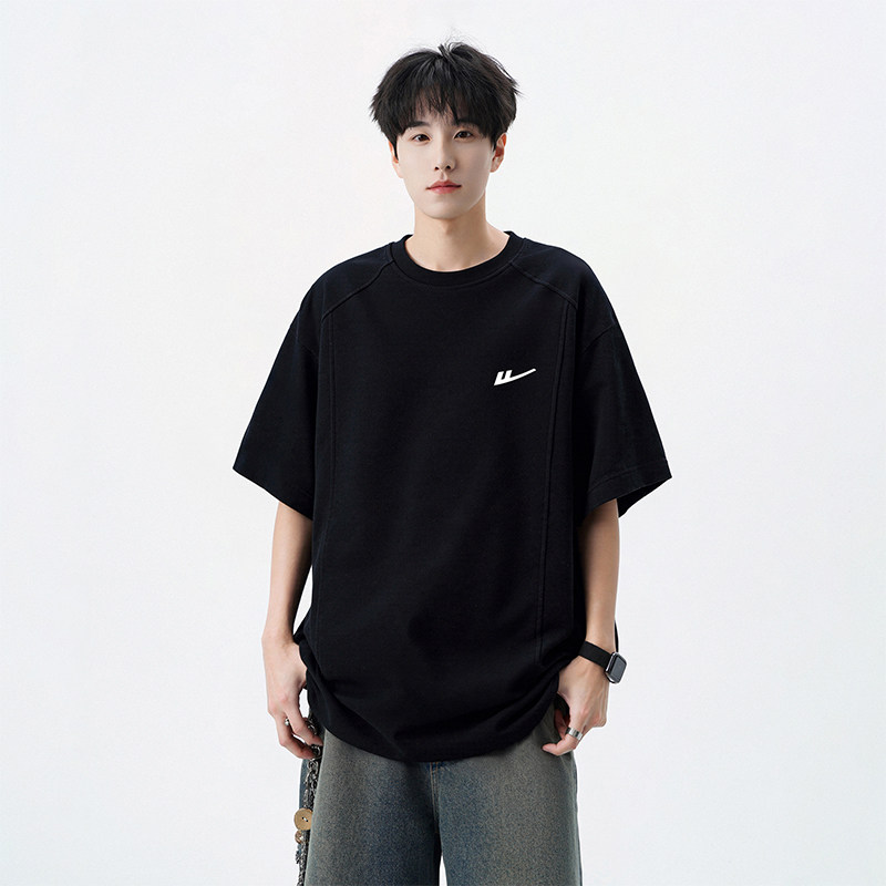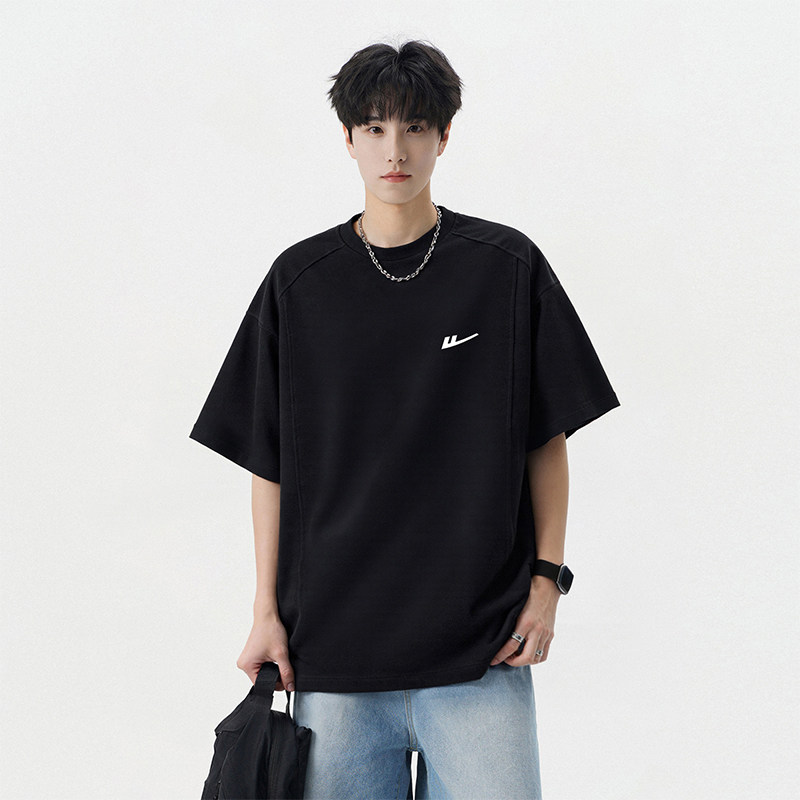 小尼力重磅纯色打底衫纯棉oversize白色短袖T恤男夏季体恤上衣服