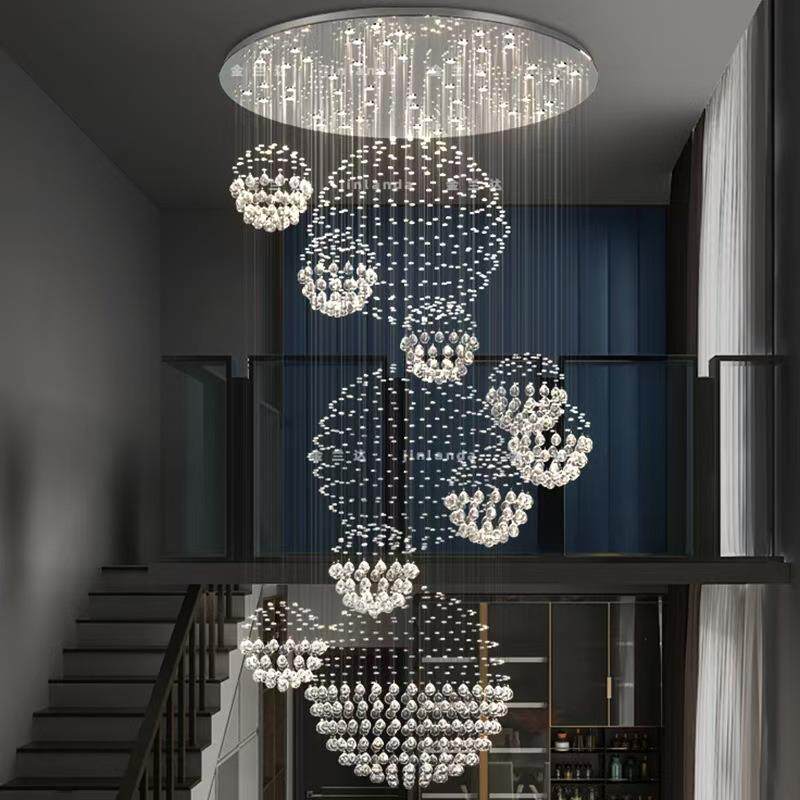 复式楼大吊灯别墅大厅吊灯客厅豪华水晶吊灯楼梯灯酒店大堂长吊灯