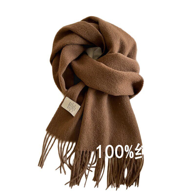ins风冬季百搭纯羊毛围巾学生情侣保暖围脖流苏披肩送礼物盒软糯