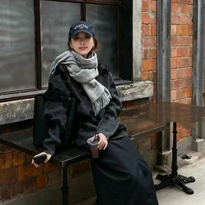 雪花双面针织围巾女秋冬季韩系氛围感加厚保暖高级感围脖复古披肩