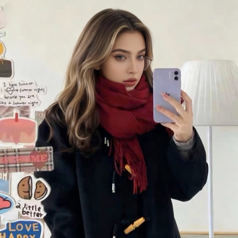 三福围巾流苏韩系高级感红色加大围脖披肩两用外搭女冬季2025新款