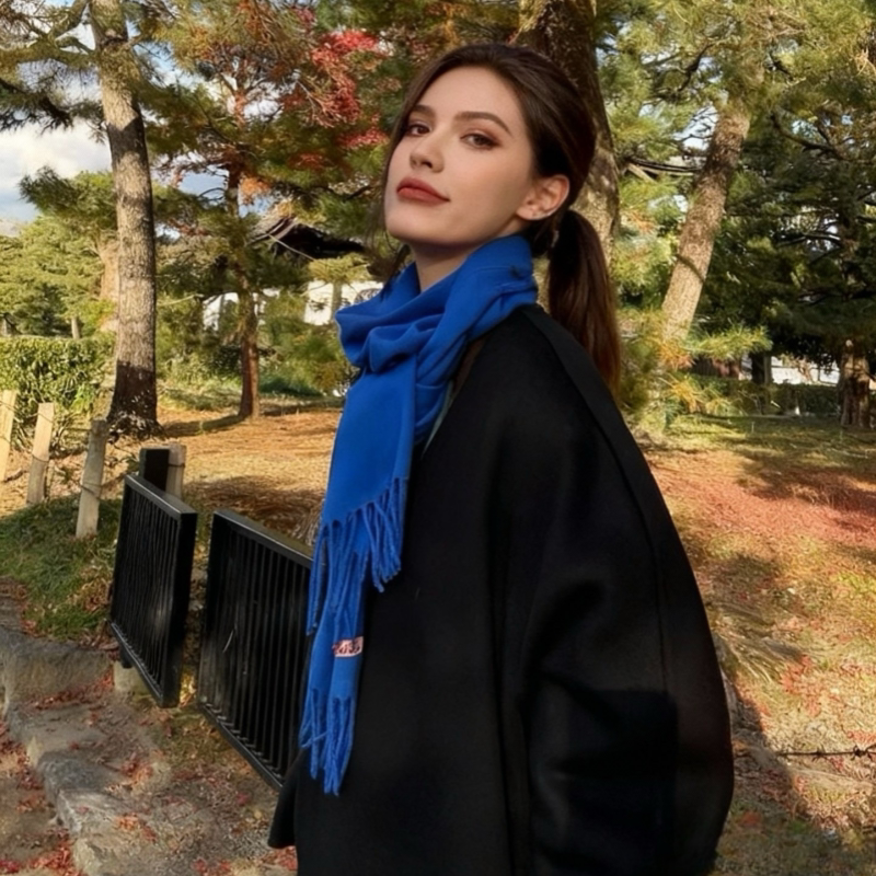 【王俊凯同款】骆驼围巾冬季女新年礼物保暖围脖男针织蓝色围巾