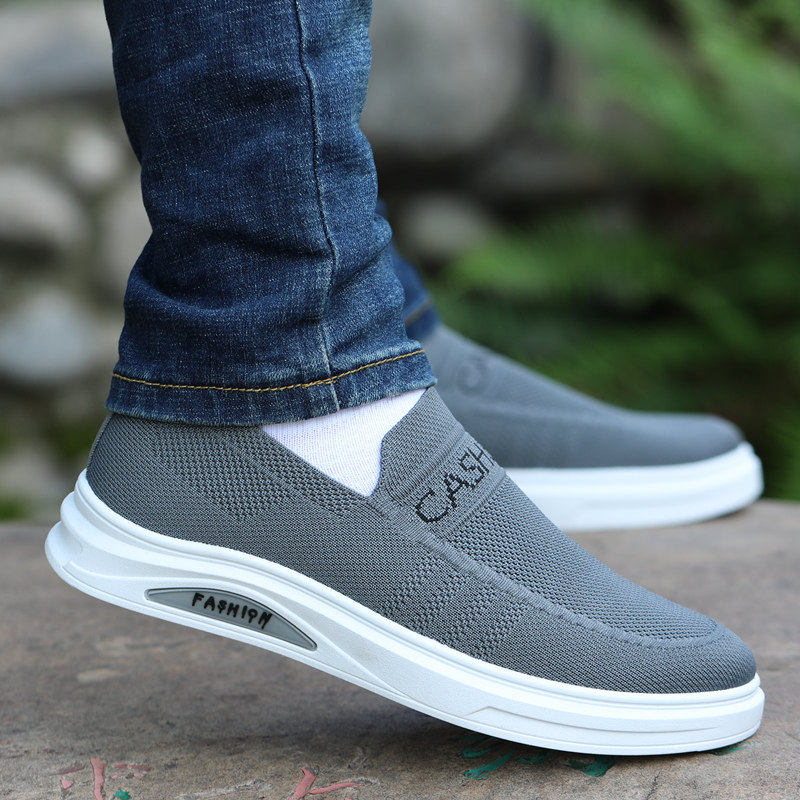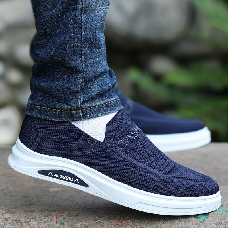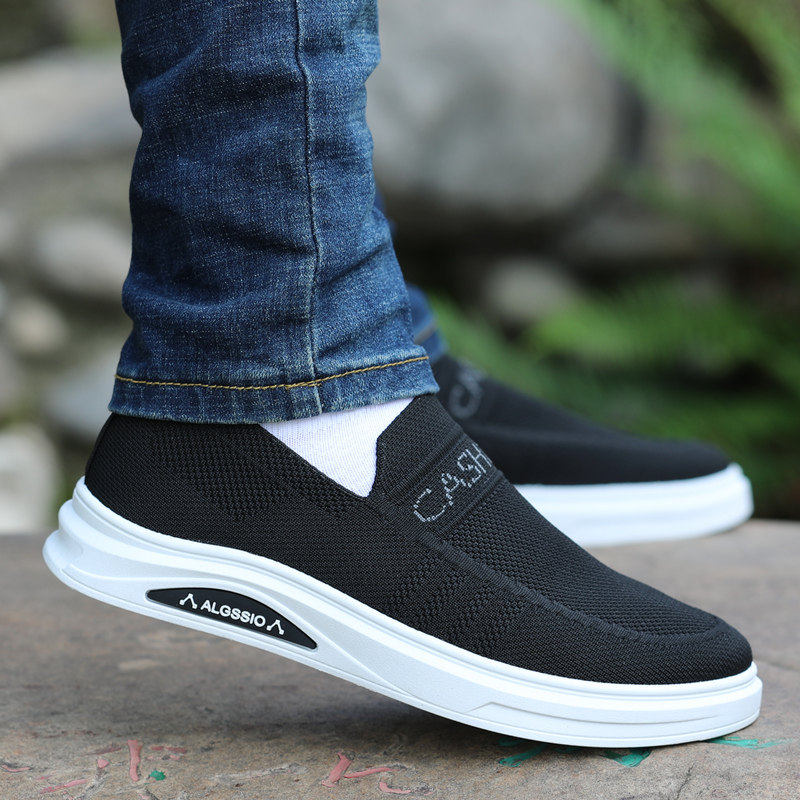 秋季男鞋透气防臭老北京布鞋男懒人鞋一脚蹬软底防滑休闲黑色