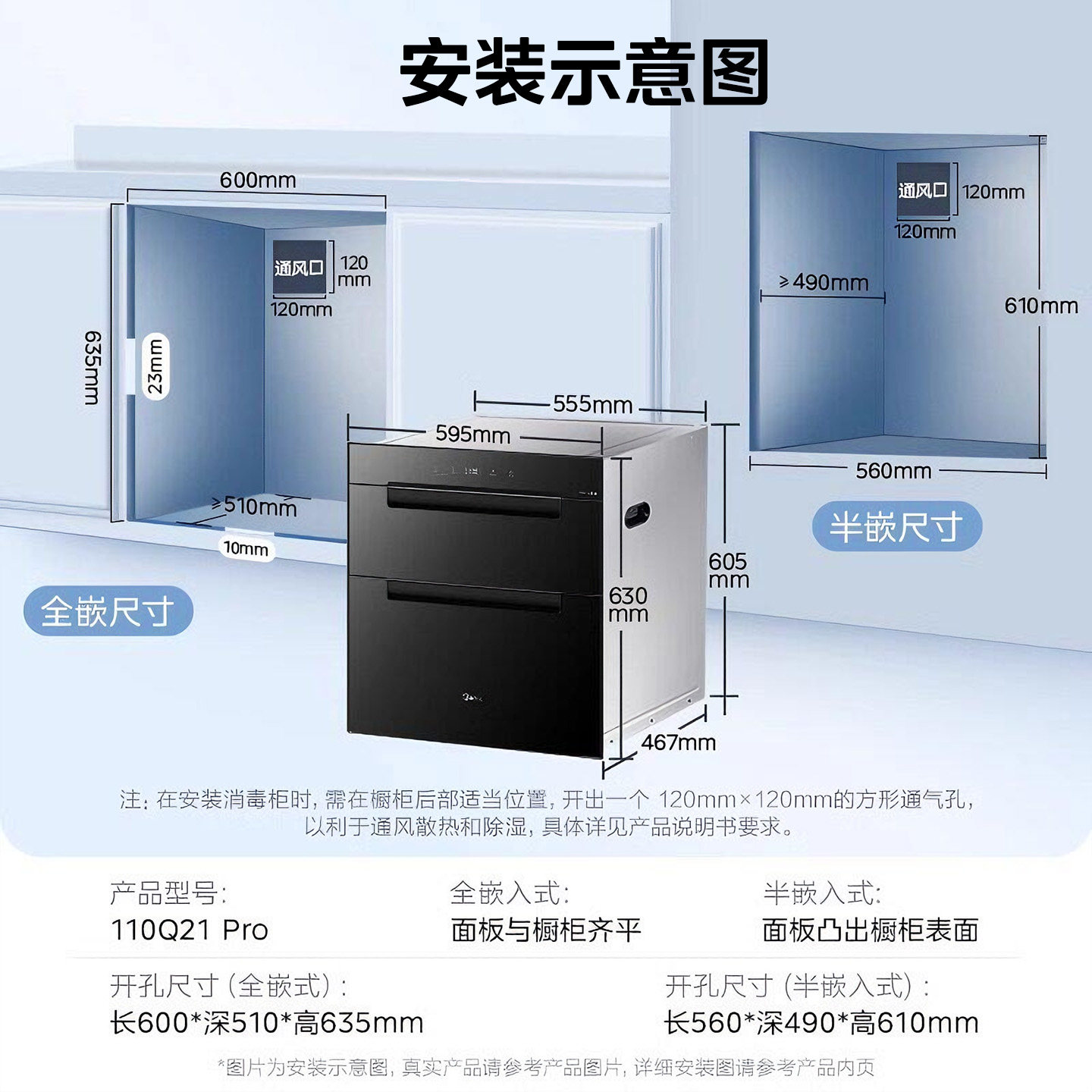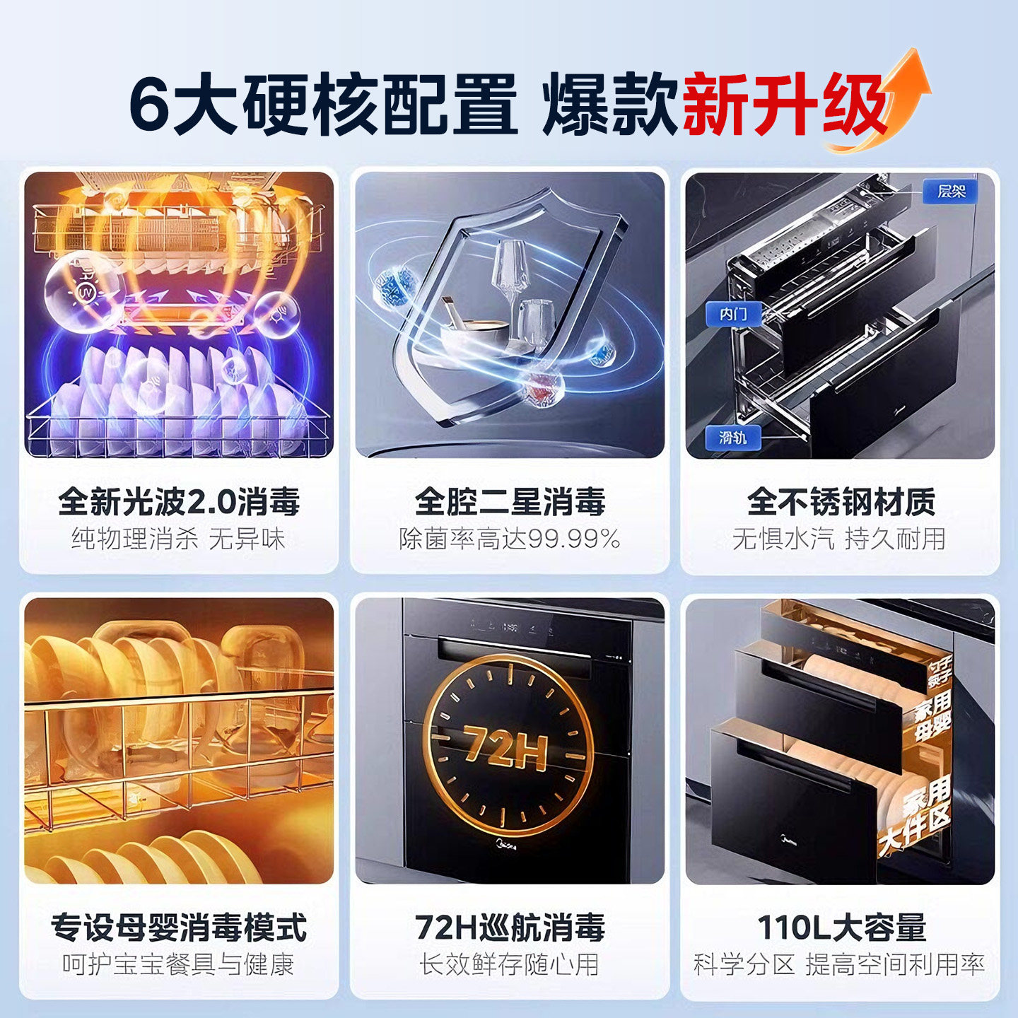 美的消毒柜嵌入式家用母婴餐具碗筷碗柜烘干一体110HQ2PRO光波2.0