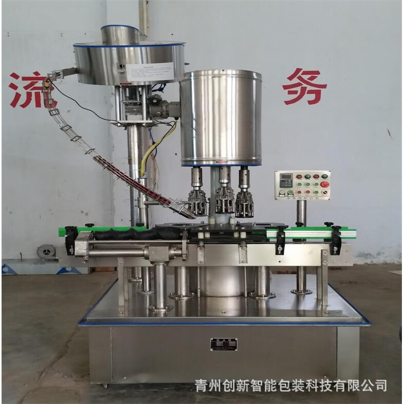 全自动铝盖封口机自动灌装生产线 白酒果酒果汁橄榄油铝盖旋盖机