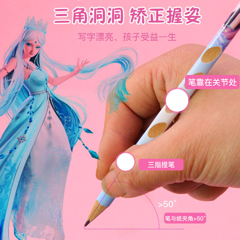 正版叶罗丽三角杆HB铅笔幼儿园女童小学生初写字铅笔纠正握笔姿势