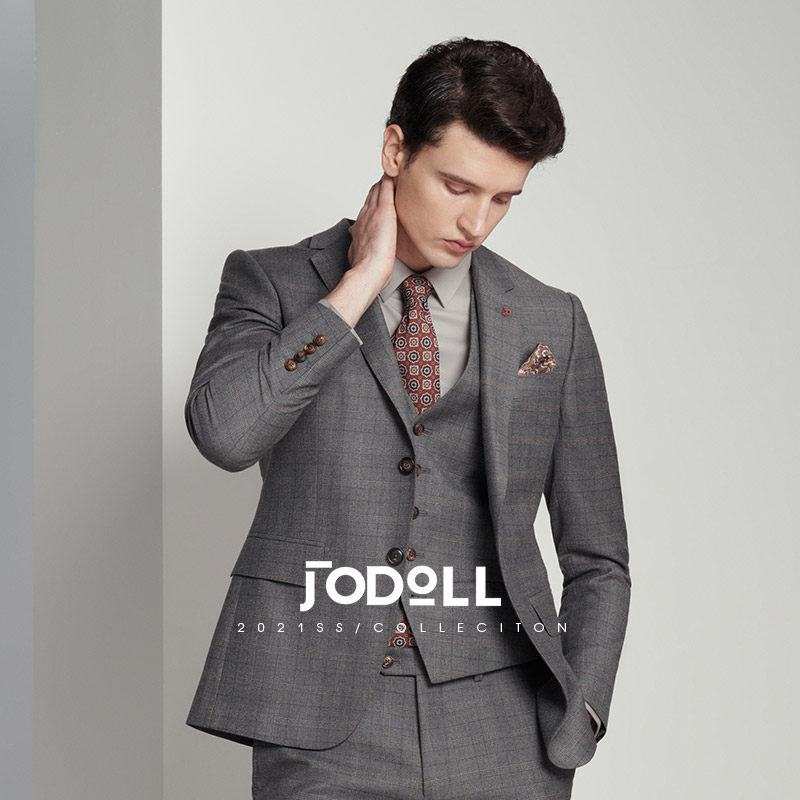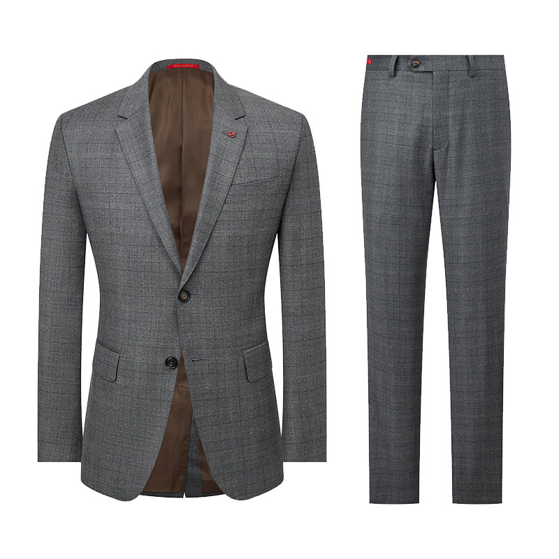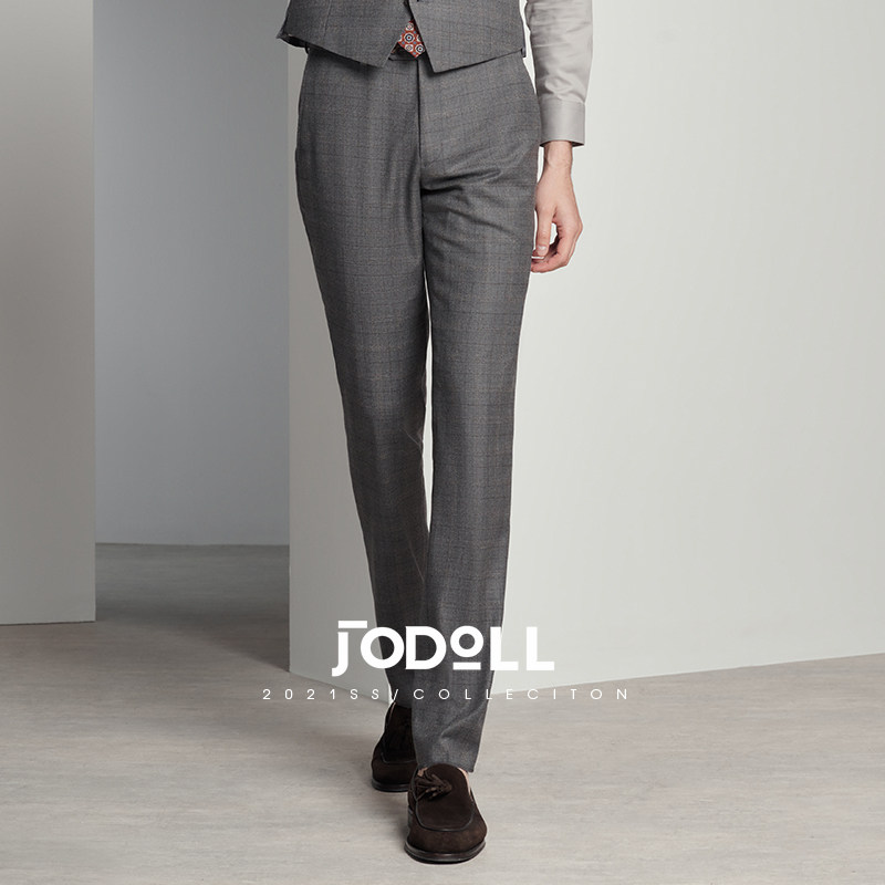 JODOLL乔顿商场同款男士西服套装100%纯羊毛时尚婚庆格纹西装礼服