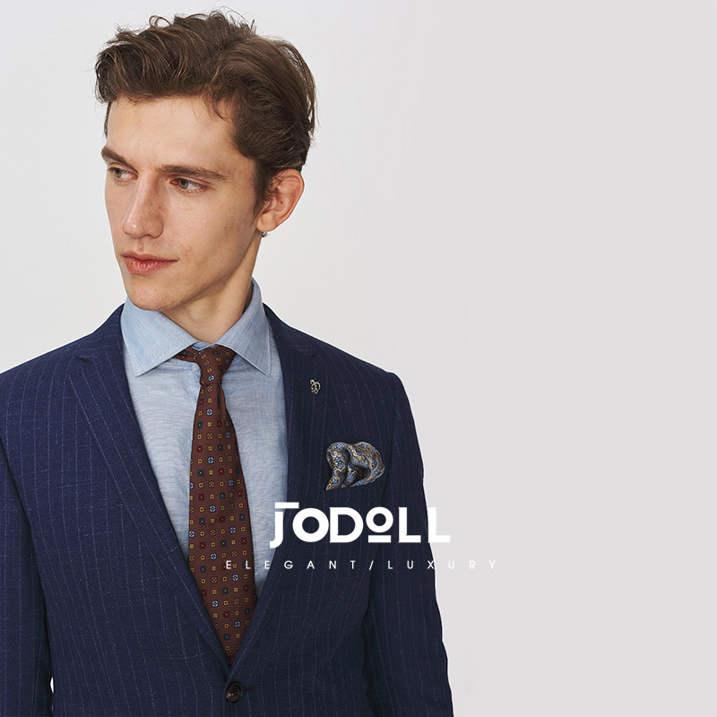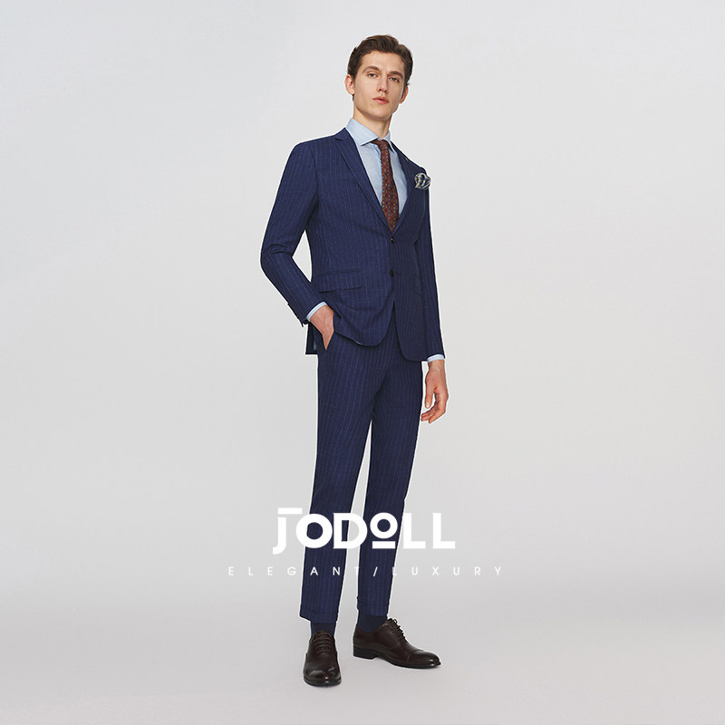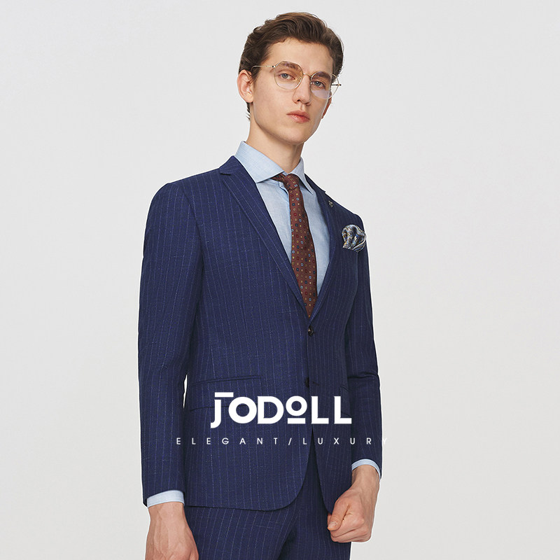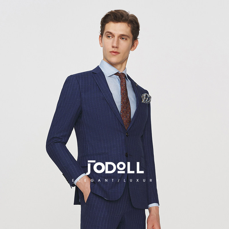 JODOLL乔顿男士商务休闲条纹西服套装上衣绵羊毛修身职业西装外套
