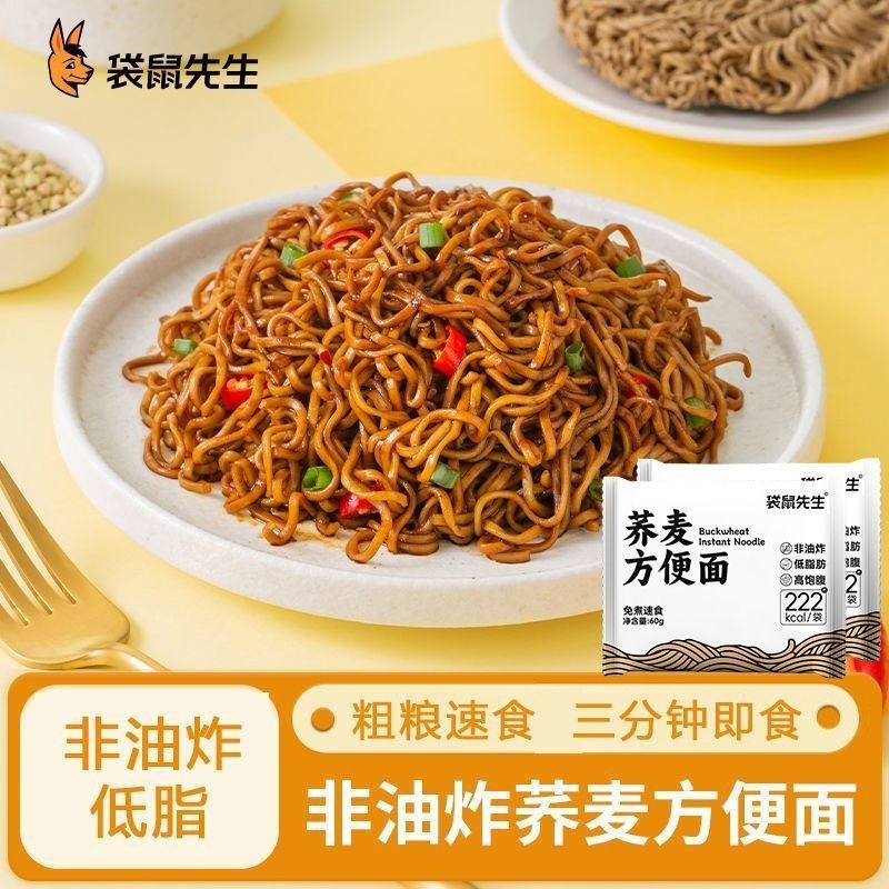 袋鼠先生荞麦面慢碳代餐方便面粗粮全麦速食拌面袋装葱油炒面轻食