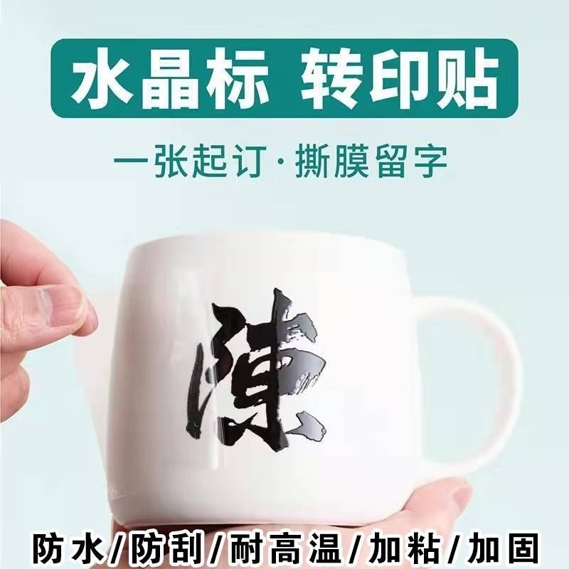 水晶标贴定做感压标立体logo标透明标签陶瓷杯子茶叶罐贴彩色数码揭膜留字贴纸镂空不干胶定制烫金uv转印贴纸