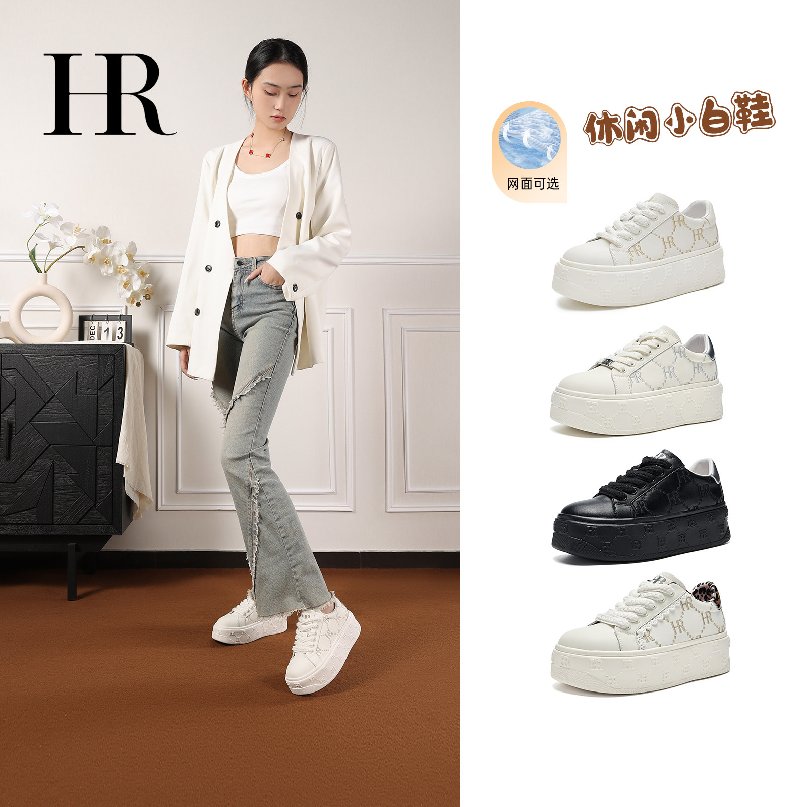 HR赫莲娜板鞋2026春秋季新款休闲透气女鞋子厚底百搭气质小白鞋潮