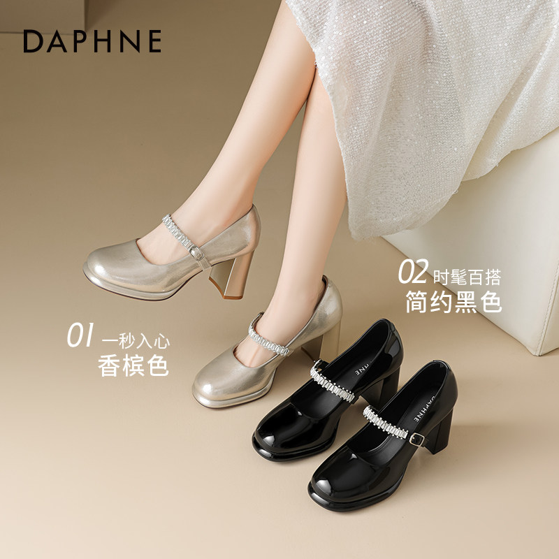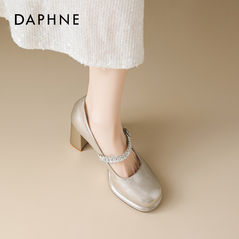 达芙妮粗跟高跟鞋婚鞋香槟色玛丽珍鞋新娘鞋绝美新款不累脚单鞋