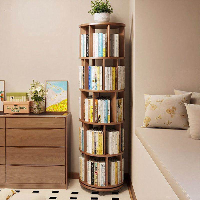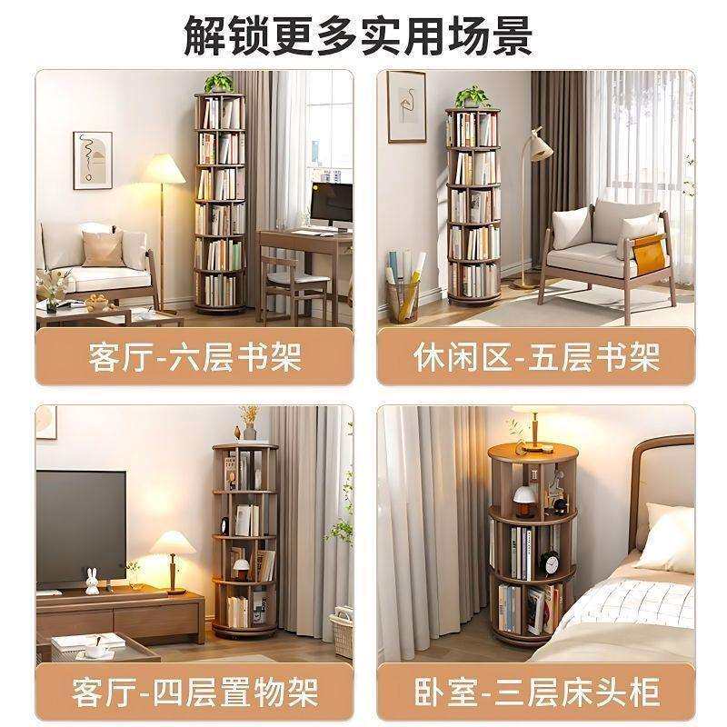 实木旋转书架360度书柜置物架落地一体靠墙角可移动转角柜小窄柜